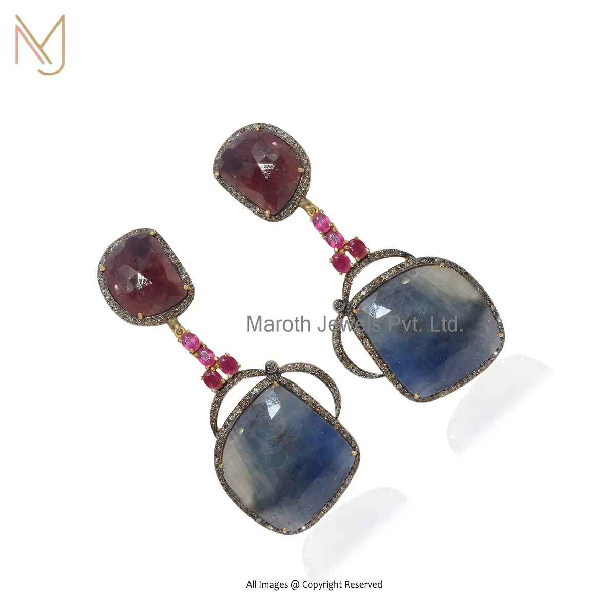 925 Silver Rhodium Yellow Gold Pated Pave Diamond , Pink Sapphire , Ruby , Blue Sapphire Gemstone Drop Earring USA