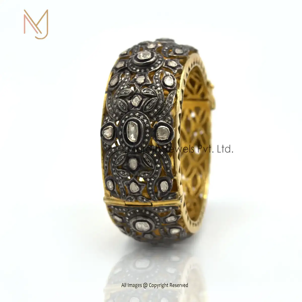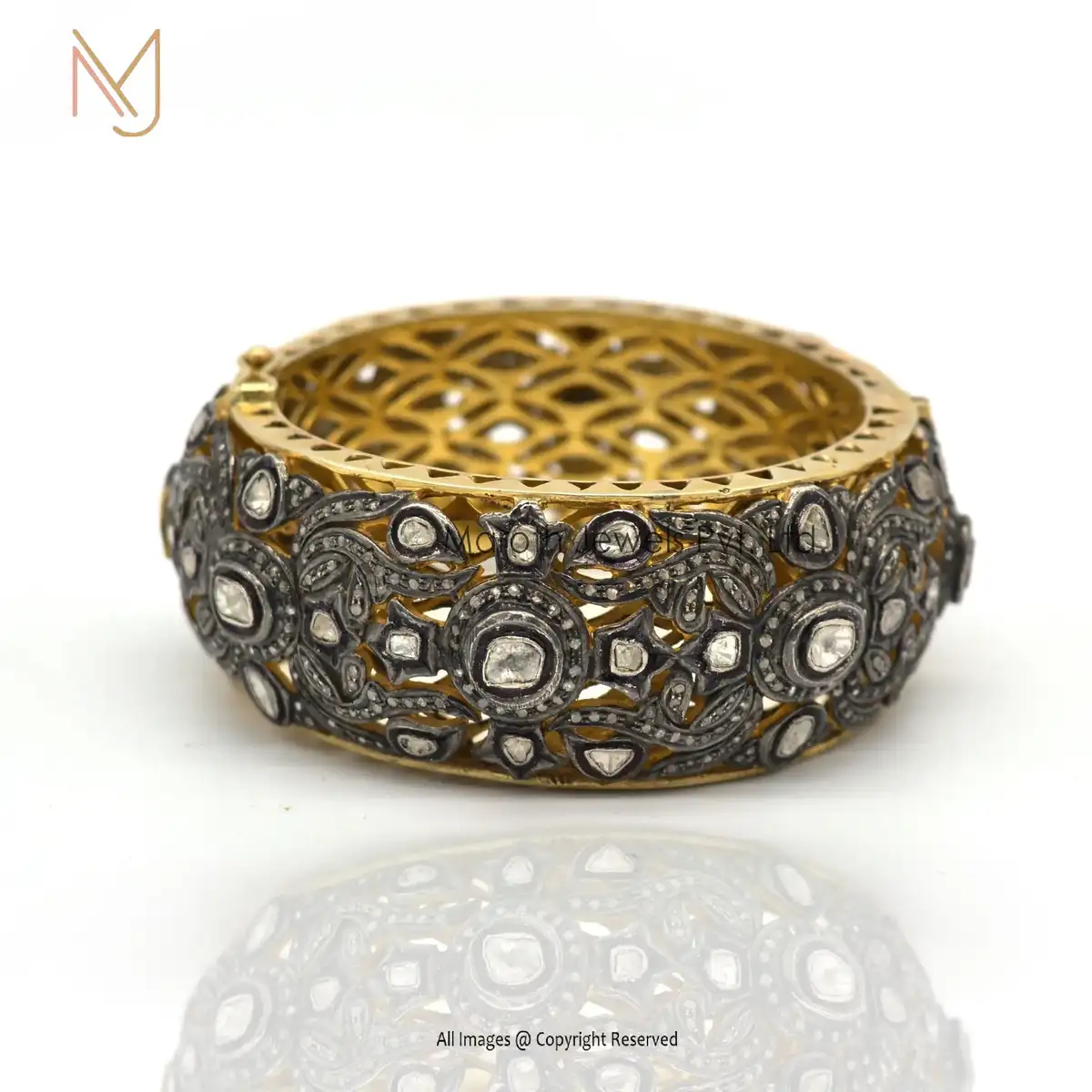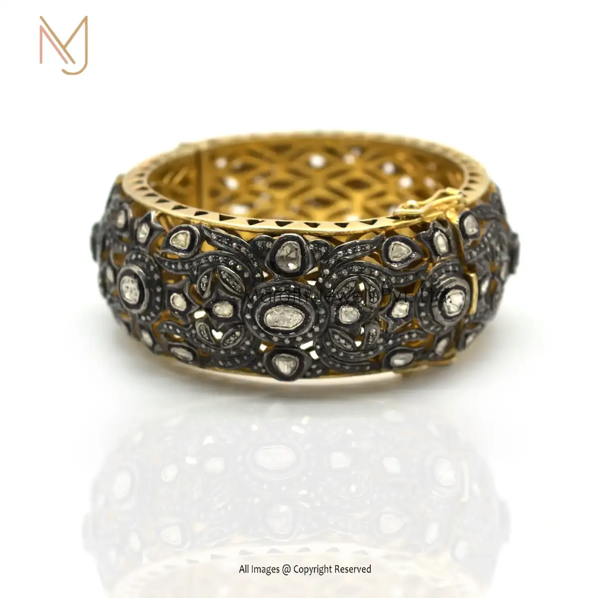 925 Silver Rhodium Yellow Gold Pave Diamond Victorian Rose Cut Diamond Bangle Jewelry Supplier