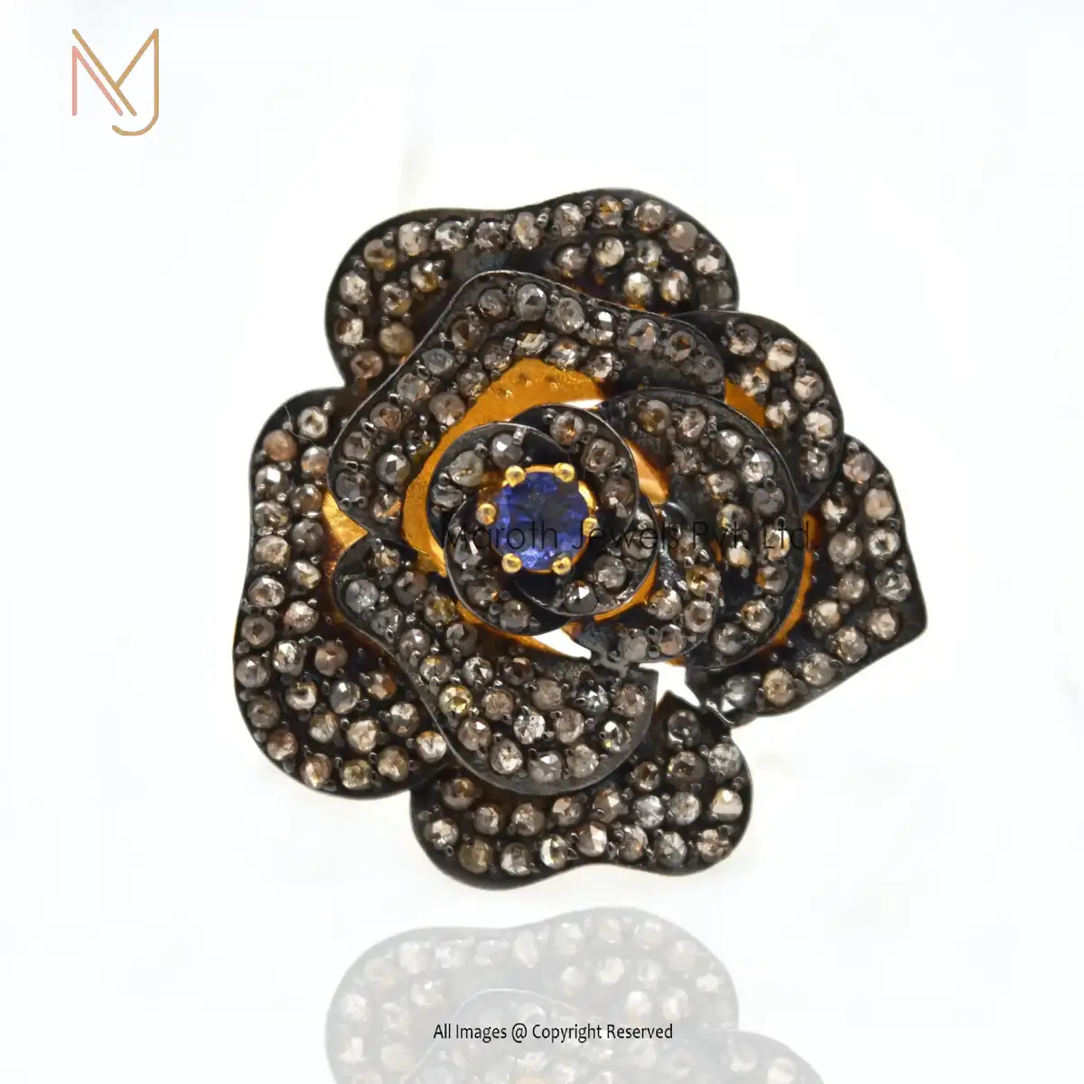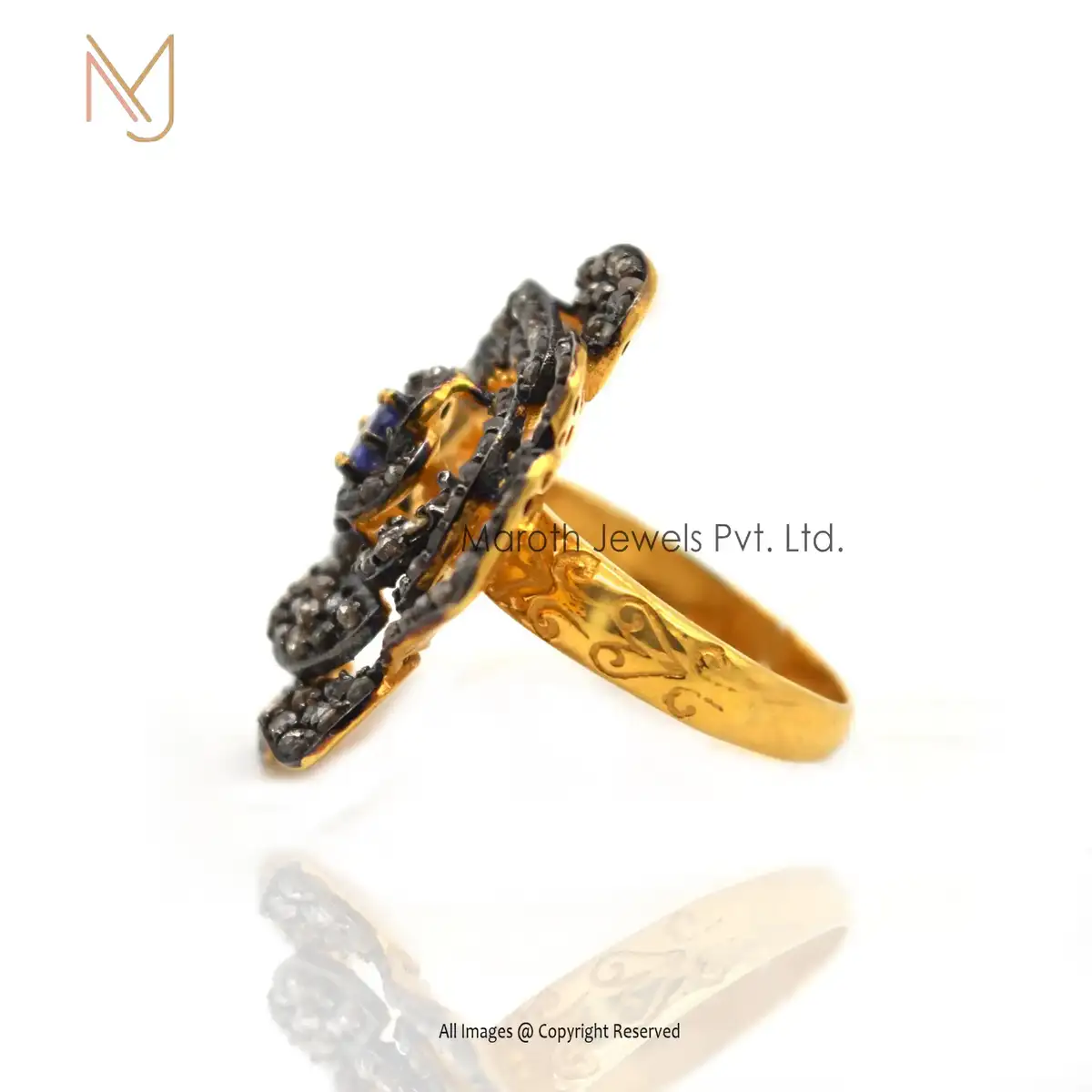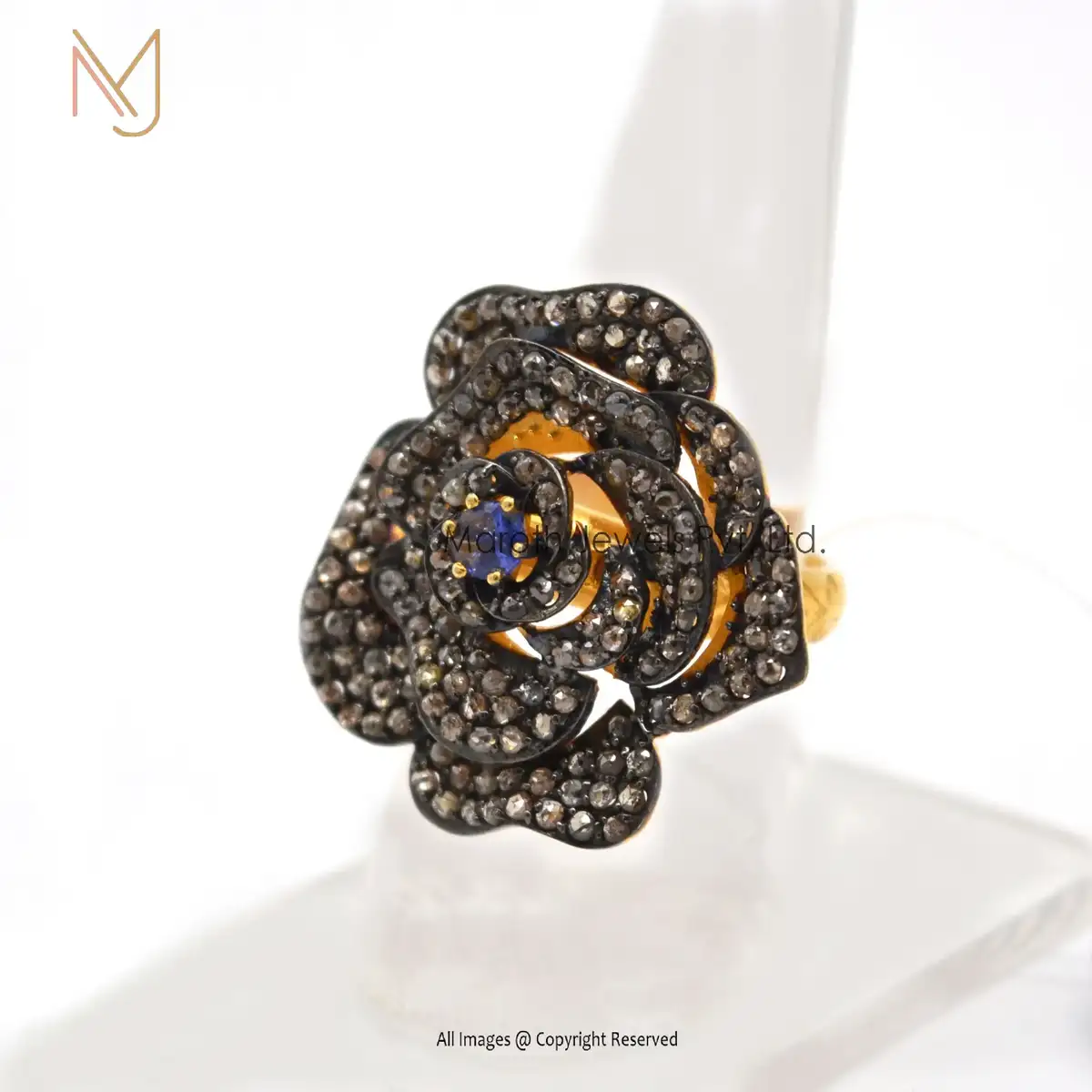 925 Silver Rhodium Yellow Gold Plated Pave Diamond Blue Ssapphire Gemstone Ring Manufacturer