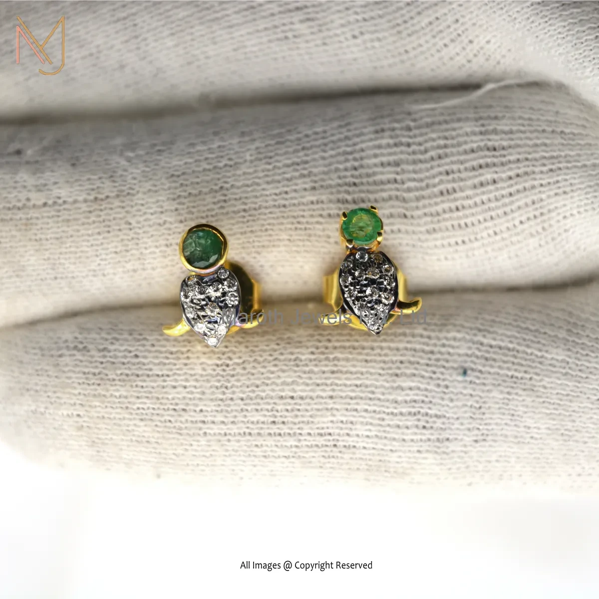 925 Silver Rhodium Yellow Gold Plated Pave Diamond Emerald Gemstone Lotus Stud Earring Manufcaturer