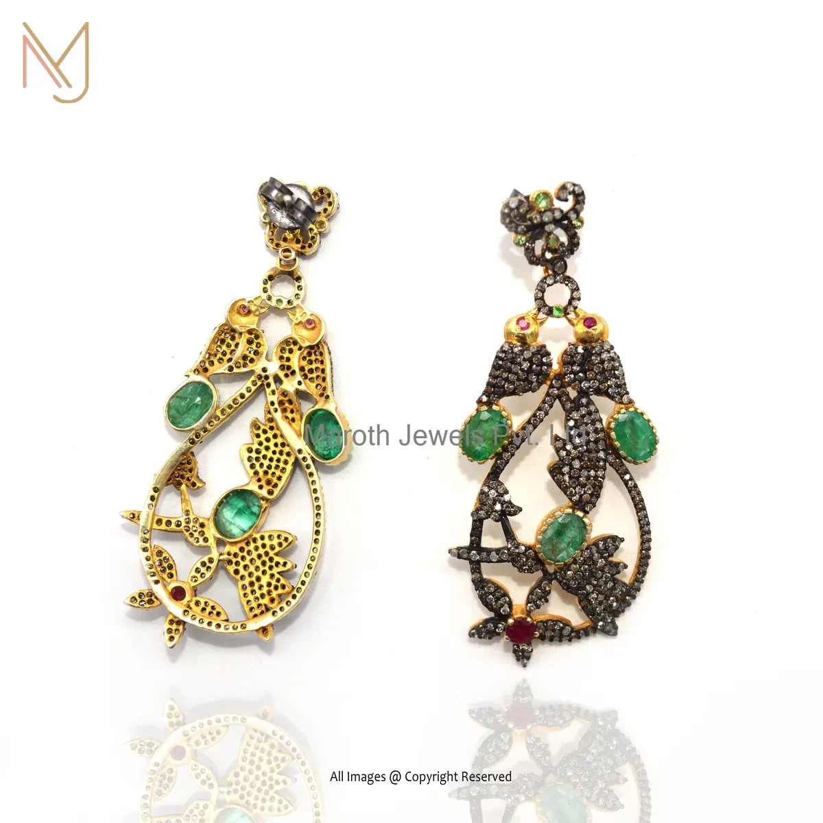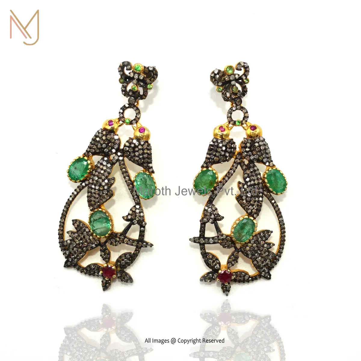 925 Silver Rhodium Yellow Gold Plated Pave Diamond , Emerald , Ruby Gemstone Dangle Earring USA