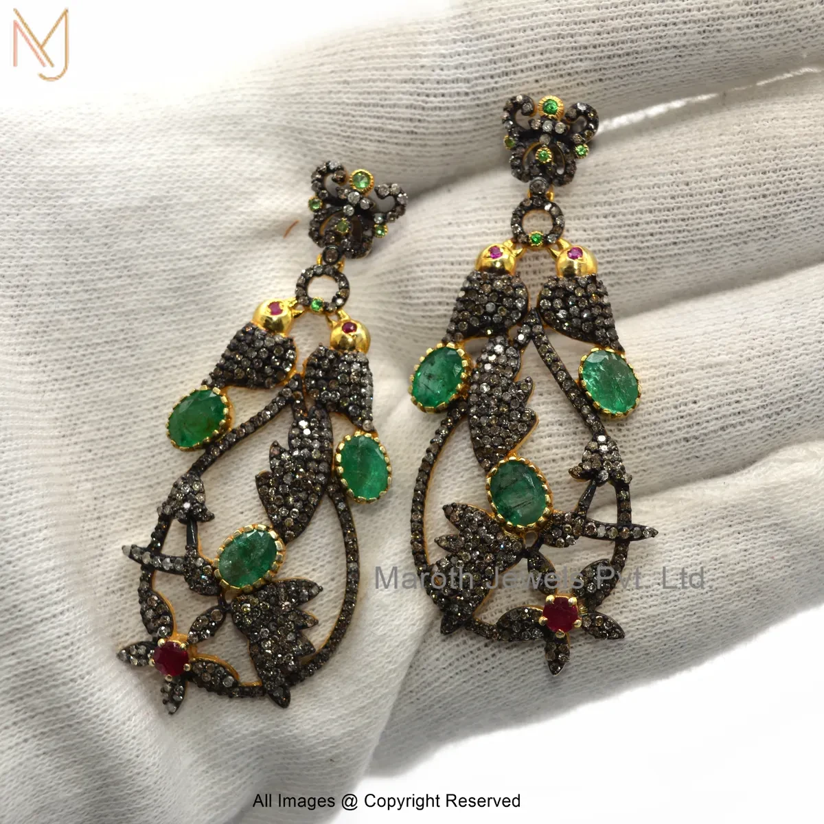 925 Silver Rhodium Yellow Gold Plated Pave Diamond , Emerald , Ruby Handmade Gemstone Drop Dangle Earring USA
