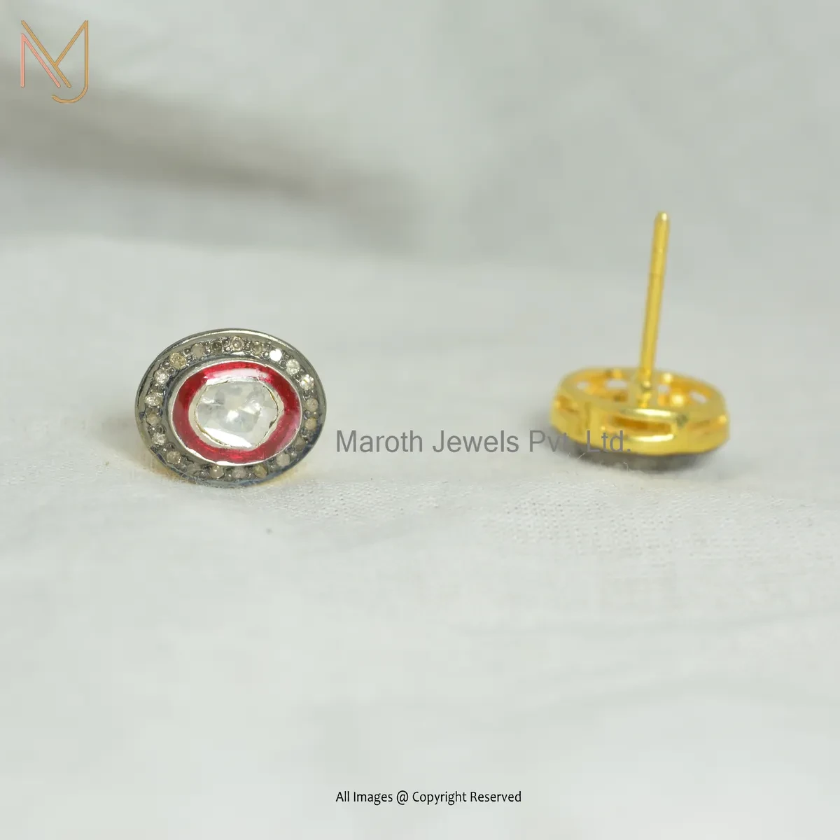 925 Silver Rhodium Yellow Gold Plated Pave Diamond Red Enamel Rose Cut Diamond Stud Earring Manufcaturer