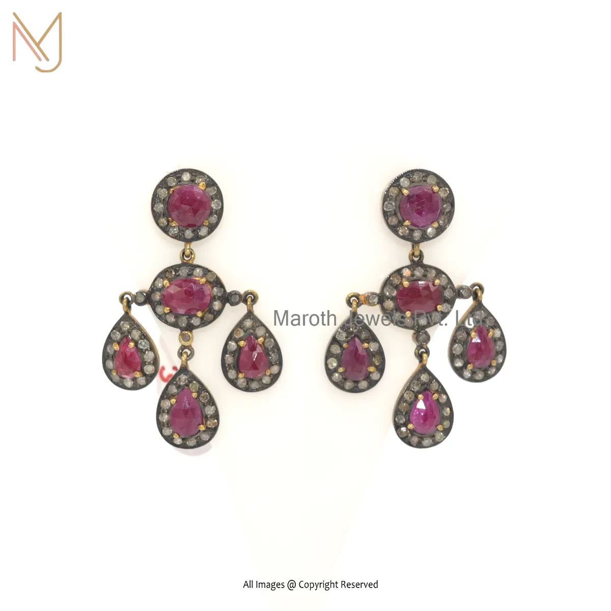 925 Silver Rhodium Yellow Gold Plated Pave Diamond Ruby Drop Earring Jewelry Supplier