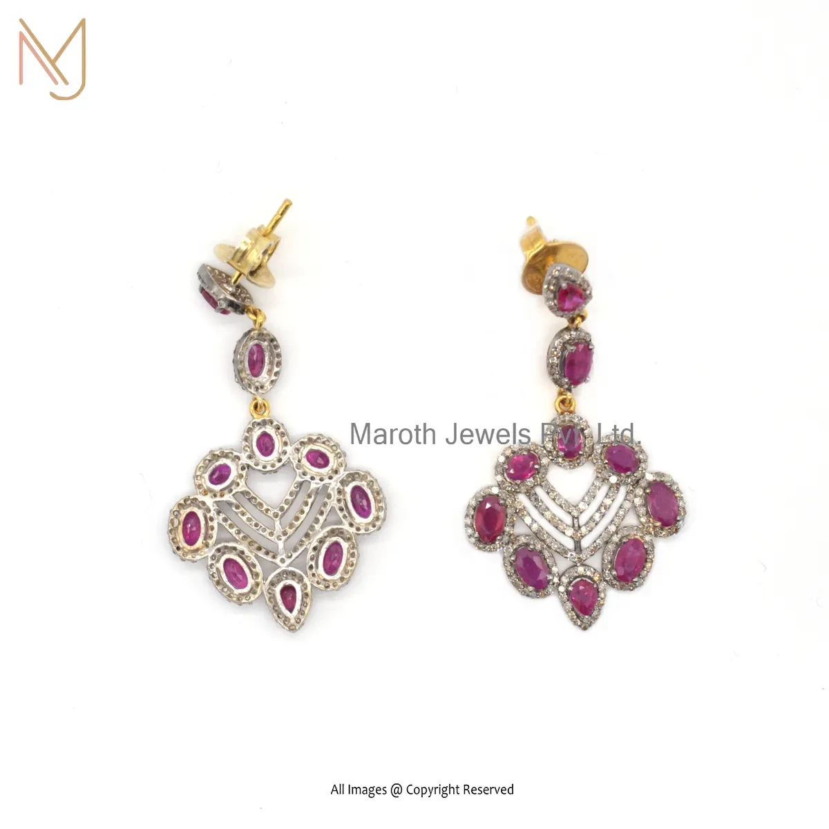 925 Silver Rhodium Yellow Gold Plated Pave Diamond Ruby Gemstone Dangle Earring Manufacturer