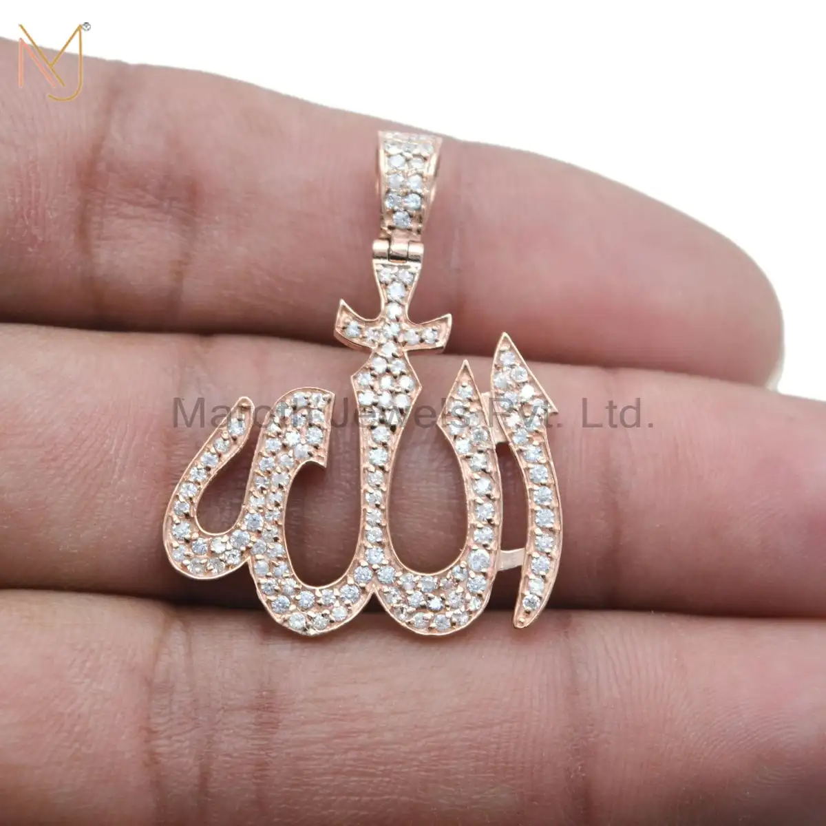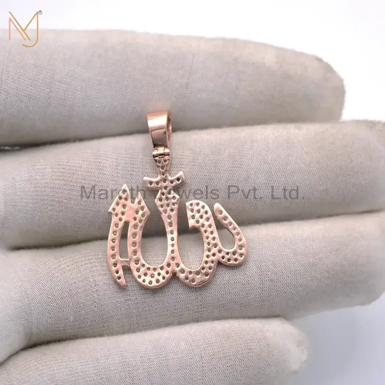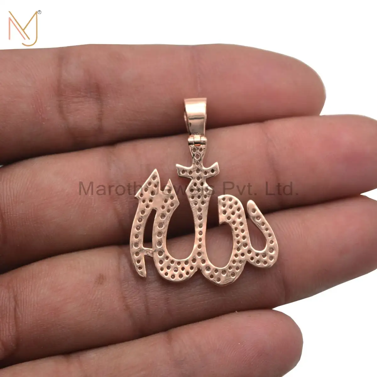 925 Silver Rose Gold Plated Allah Religious Pave Diamond Pendant Manufacturer