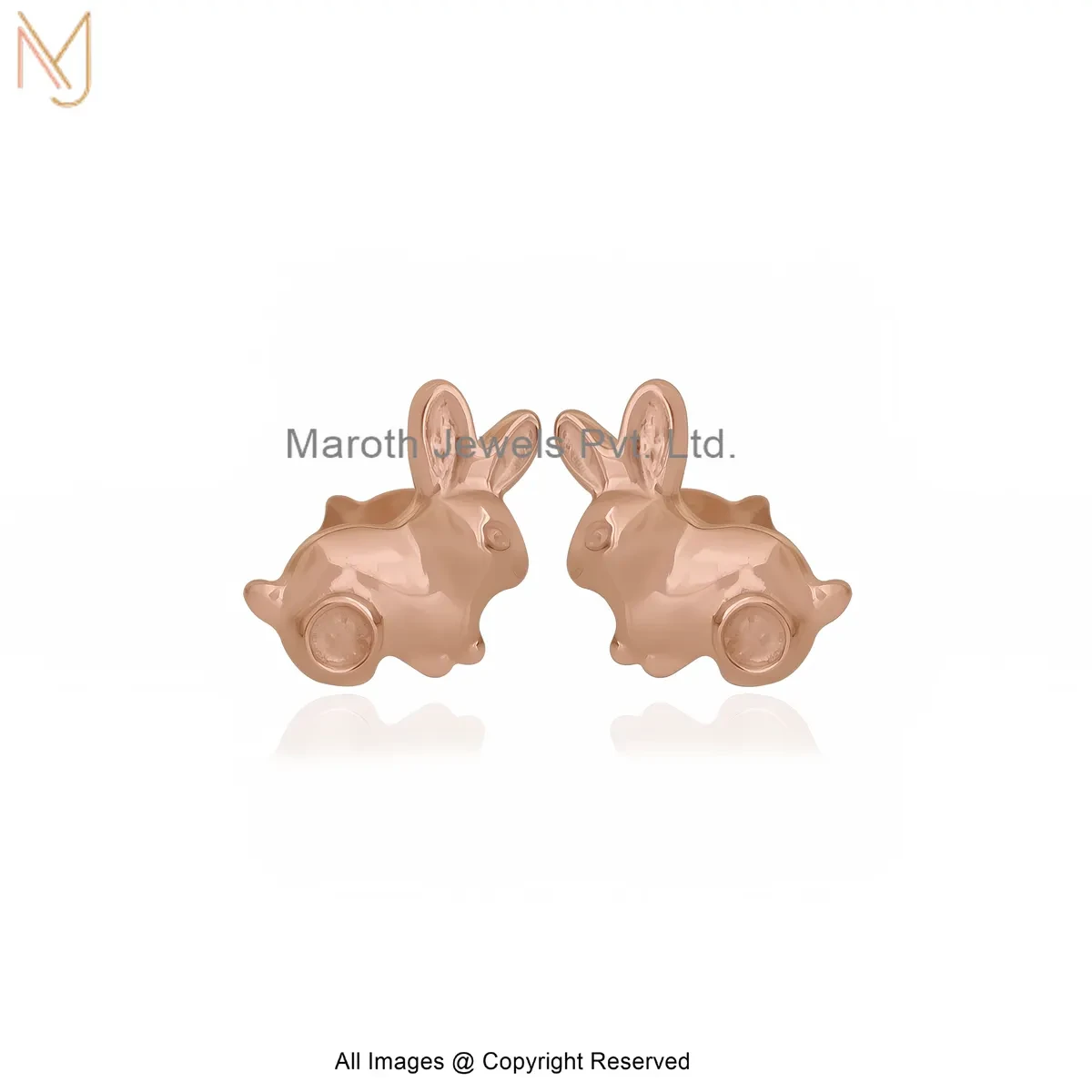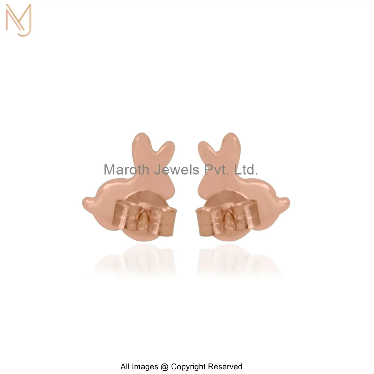 925 Silver Rose Gold Plated Bunny Stud Earring Custom Jewelry