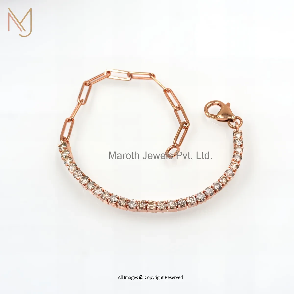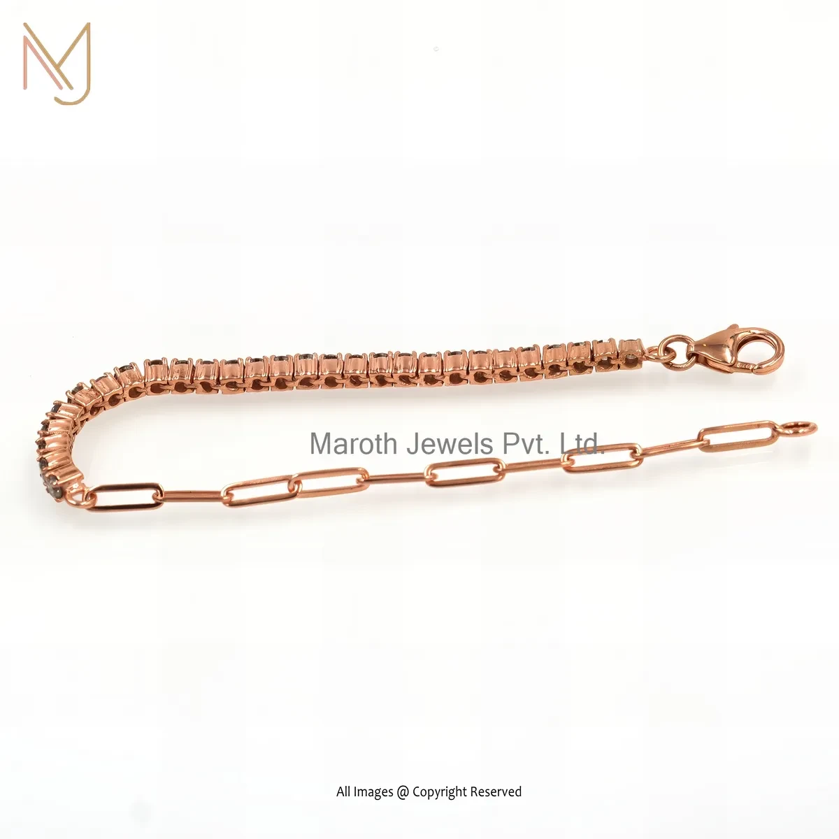 925 Silver Rose Gold Plated Diamond Half Tennis And Paperclip Bracelet Manufacturer