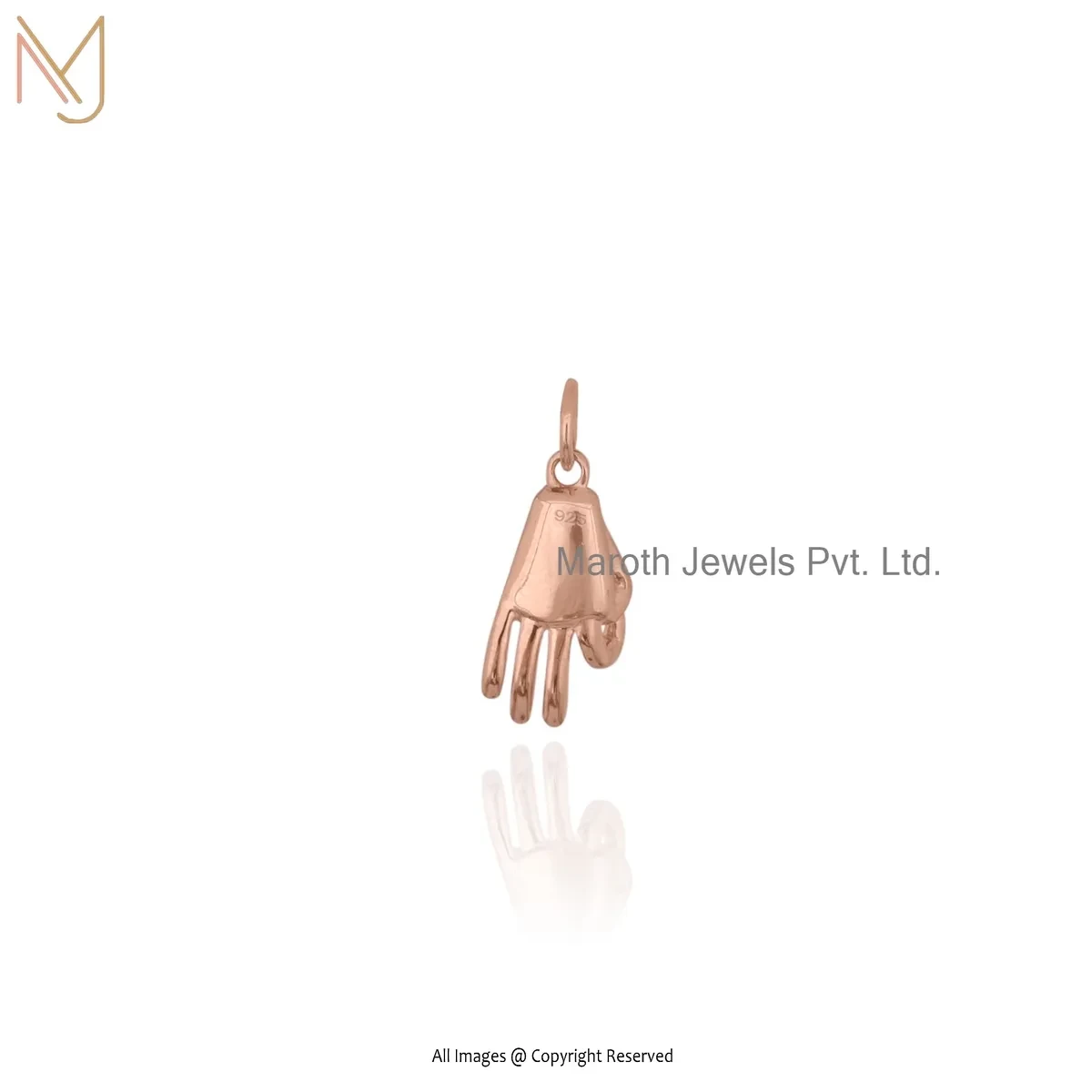 925 Silver Rose Gold Plated Enamel Evil Eye Hand Figa Charm Pendant Custom Jewelry
