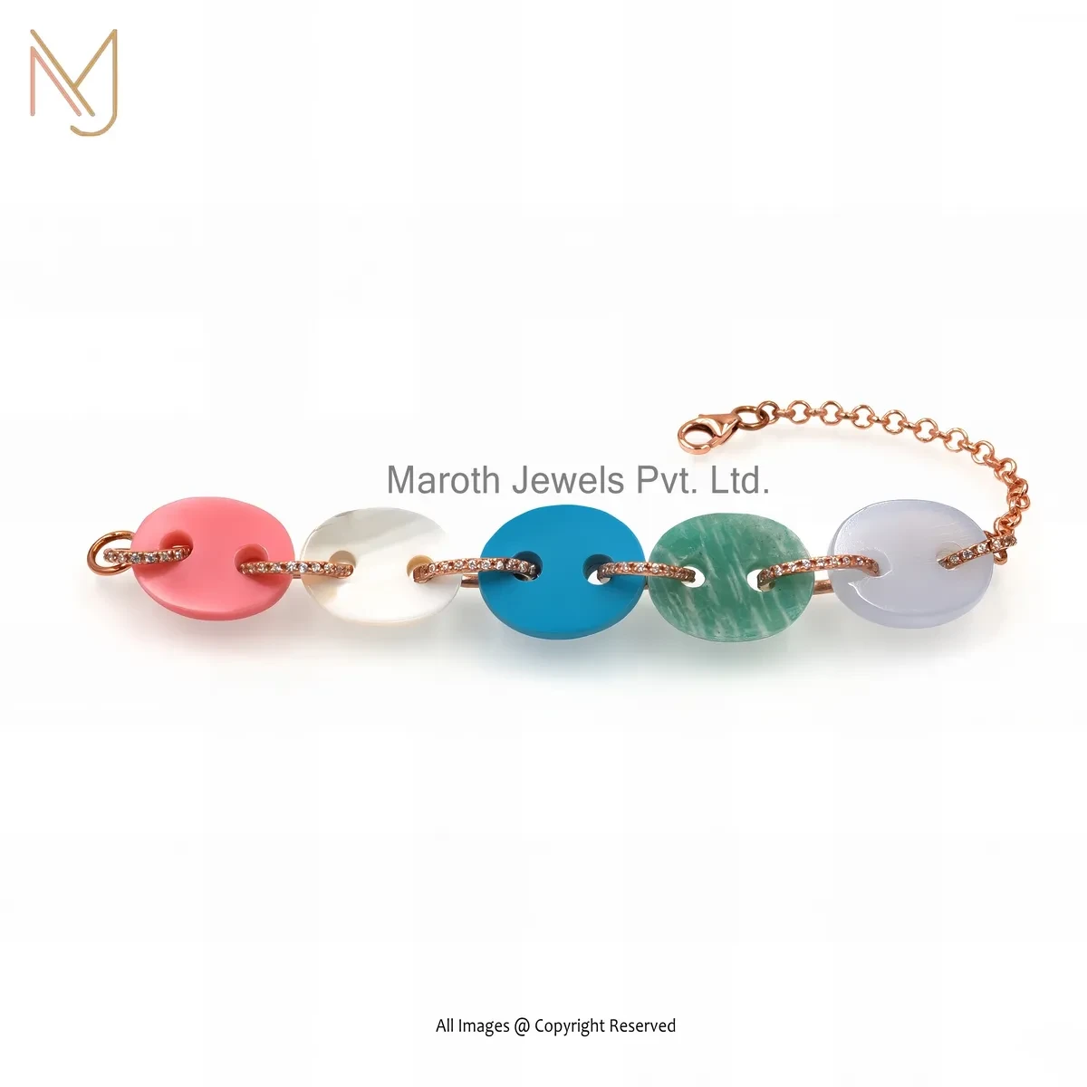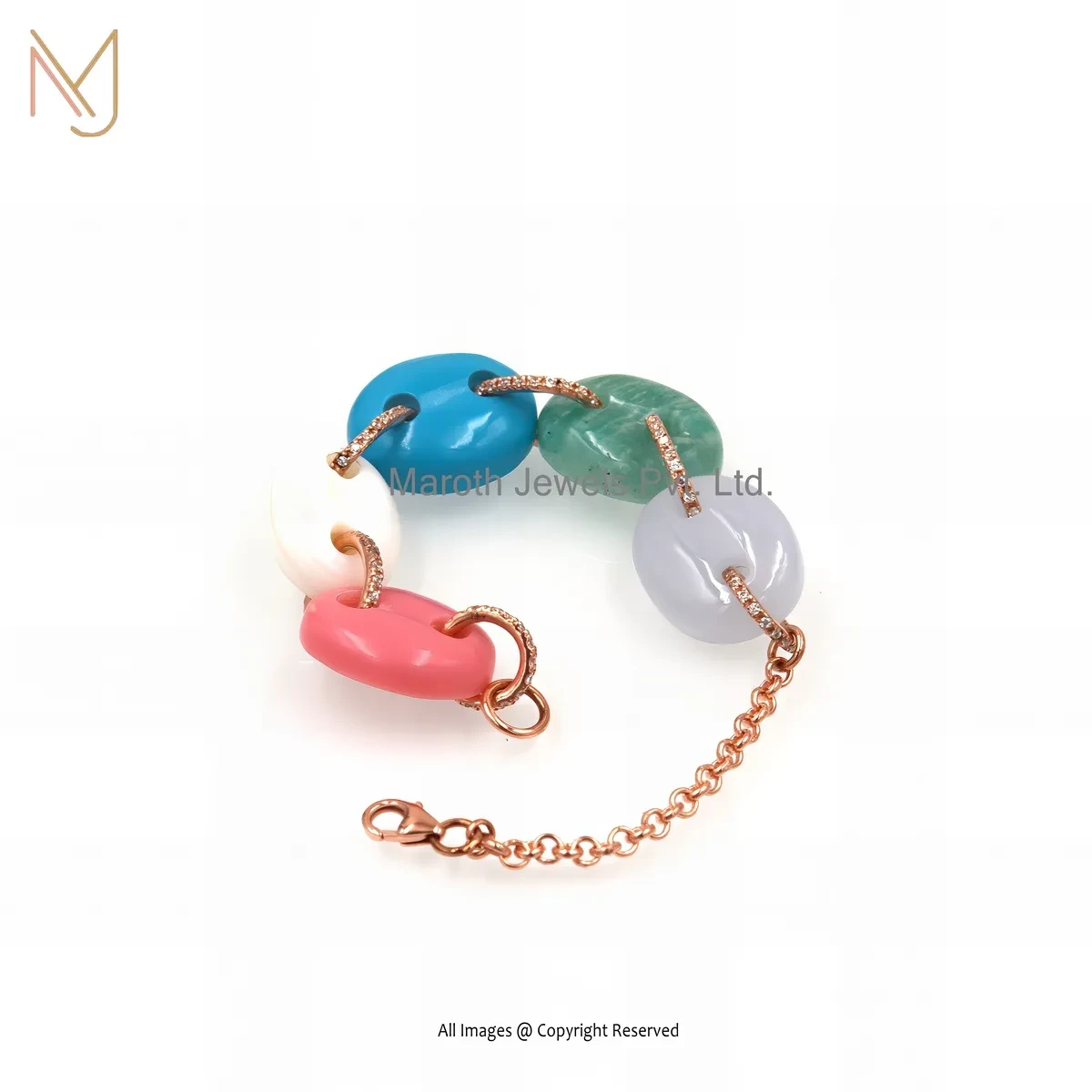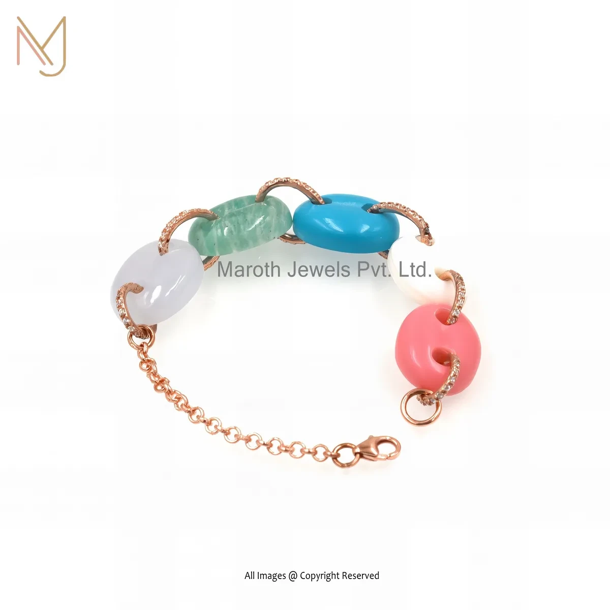 925 Silver Rose Gold Plated Multi Gemstone Mariner Link Bracelet Custom Jewelry