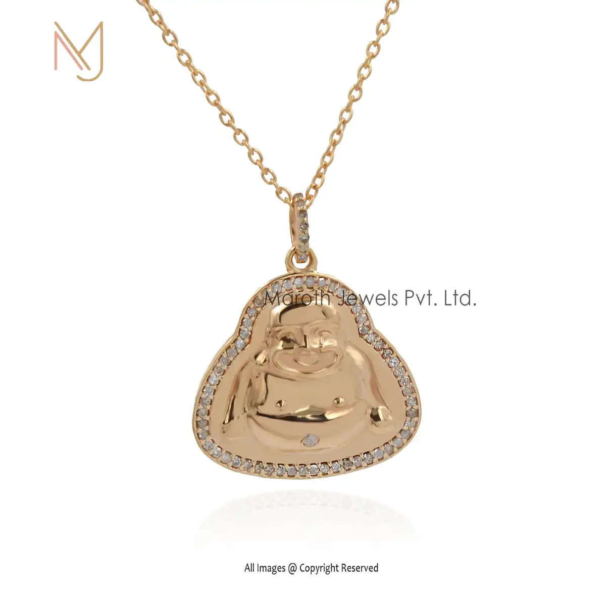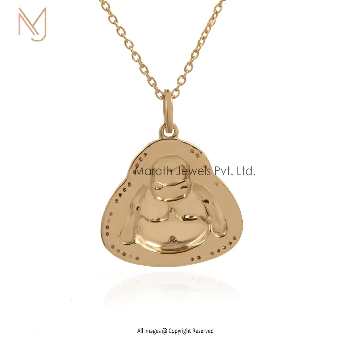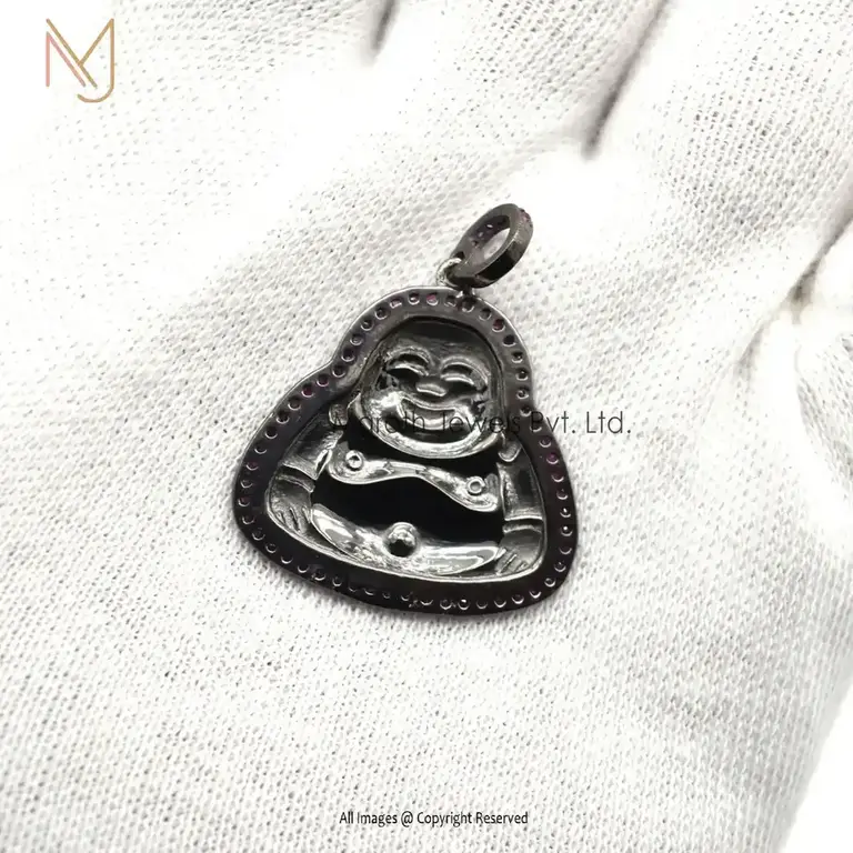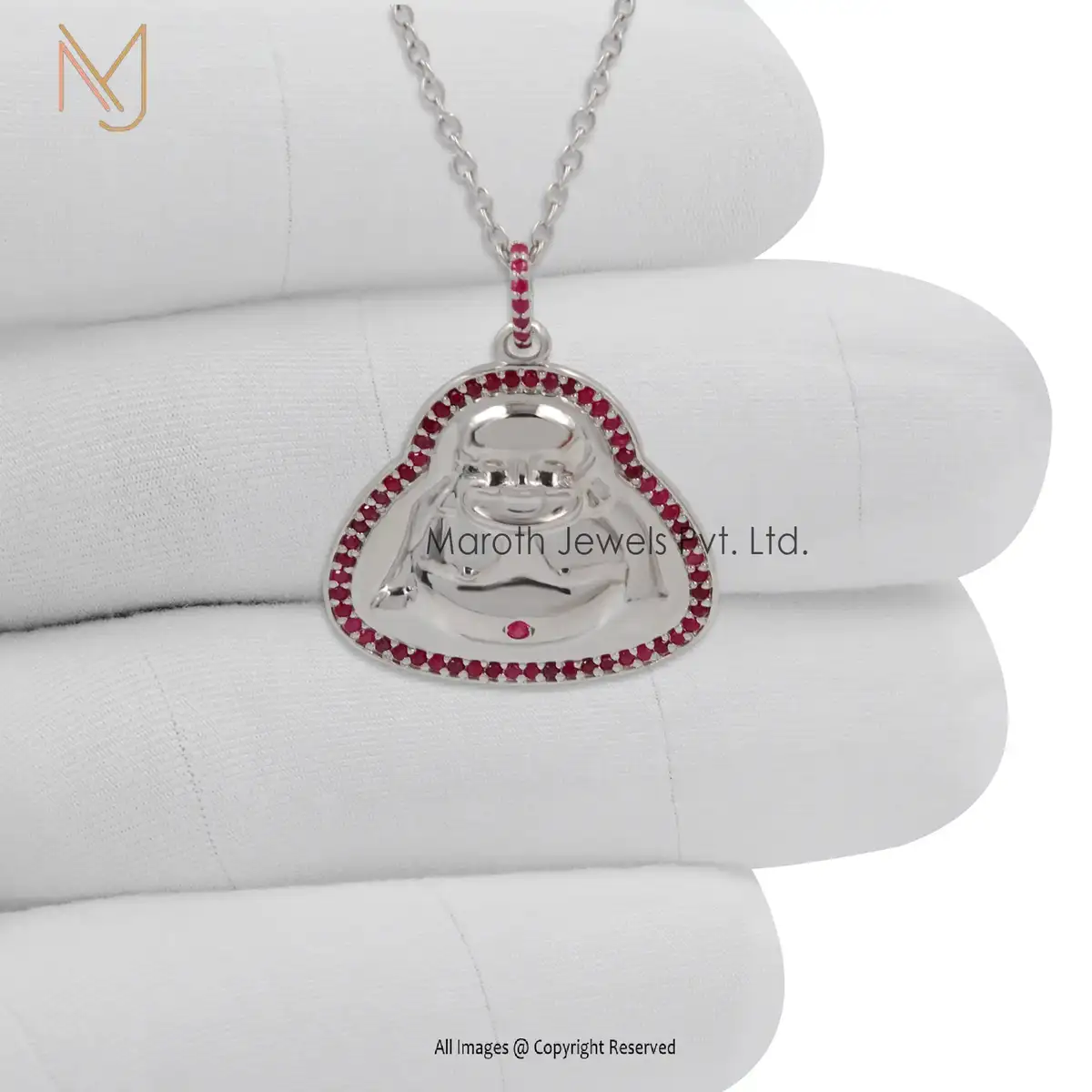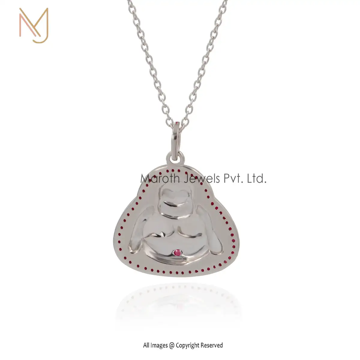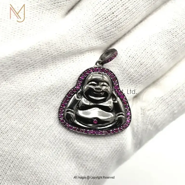 925 Silver Rose Gold Plated Pink Sapphire Gemstone Buddha Pendant Spiritual Custom Jewelry