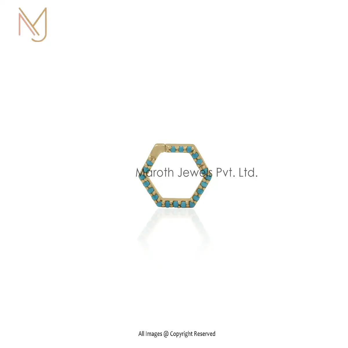 925 Silver Turquoise Hexagon Charm Holder Jewelry Supplier