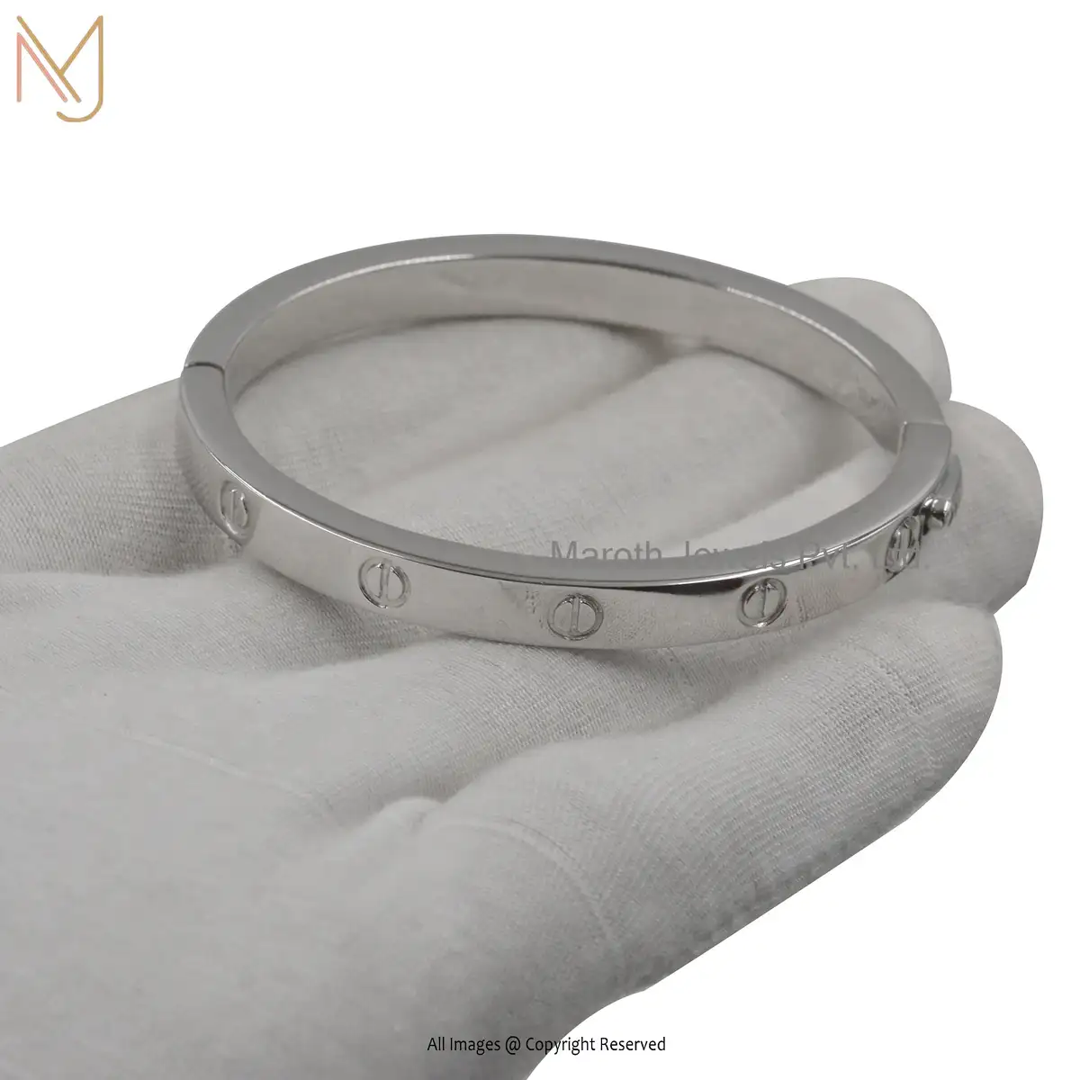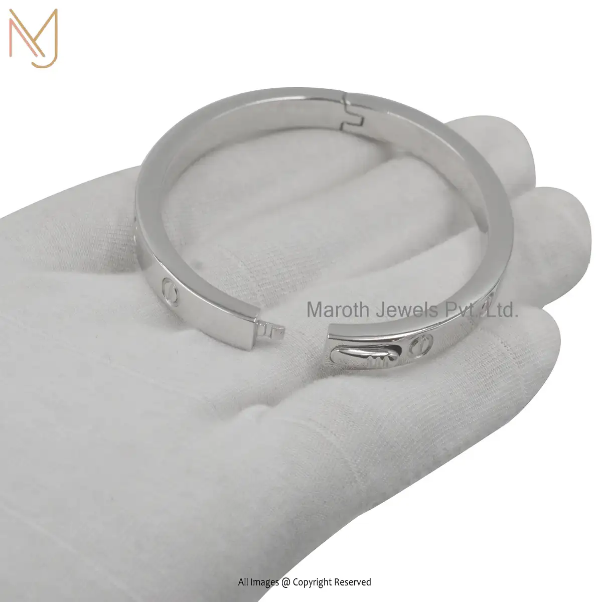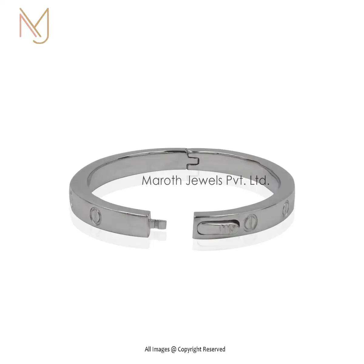 925 Silver White Gold 2 Micron Plated Bangle Open/Close Mechanism Bangle Custom Jewelry