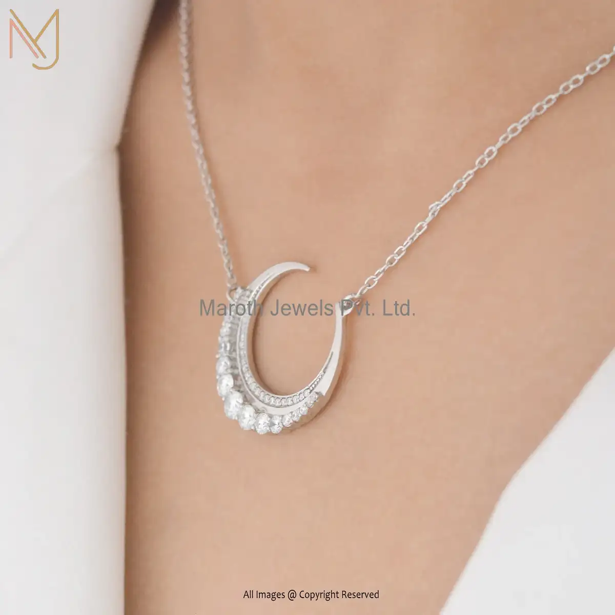 925 Silver White Gold Moissanite Half Moon Pendant Necklace Custom Jewelry