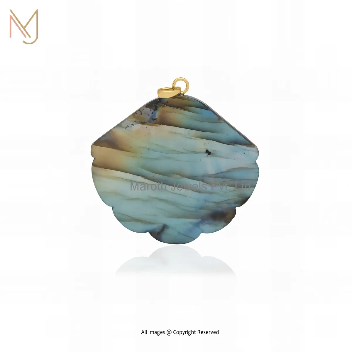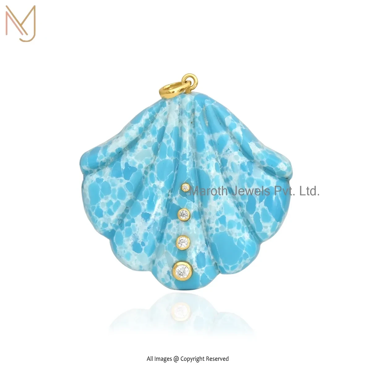925 Silver White Gold Plated Cubic Zircon & Black Onyx Gemstone Shell Pendant Custom Jewelry