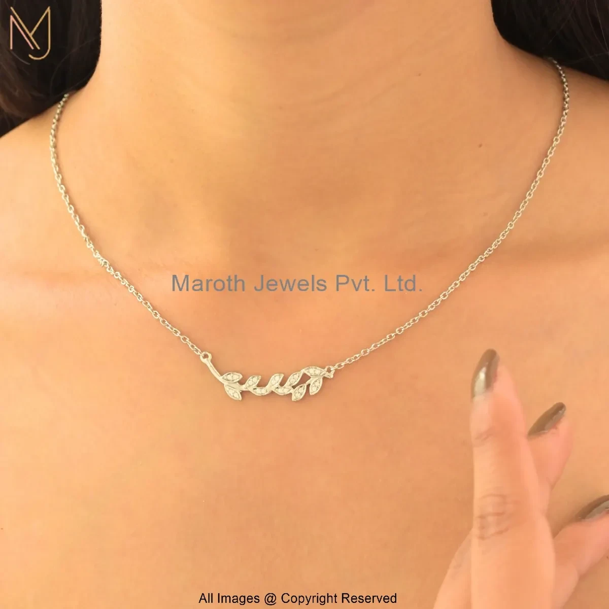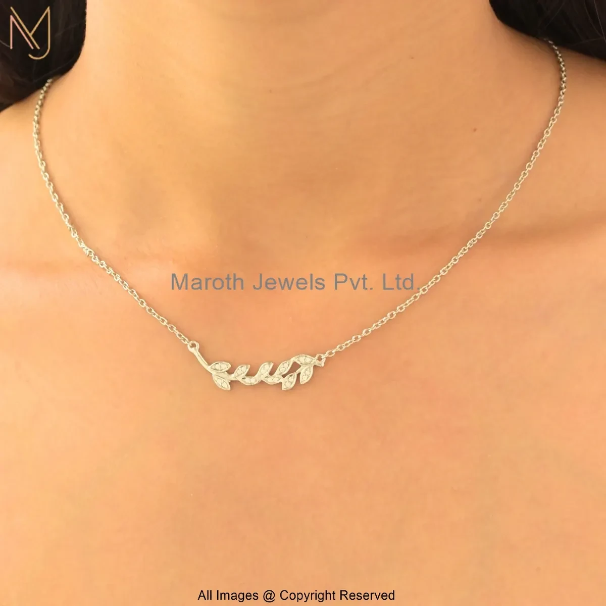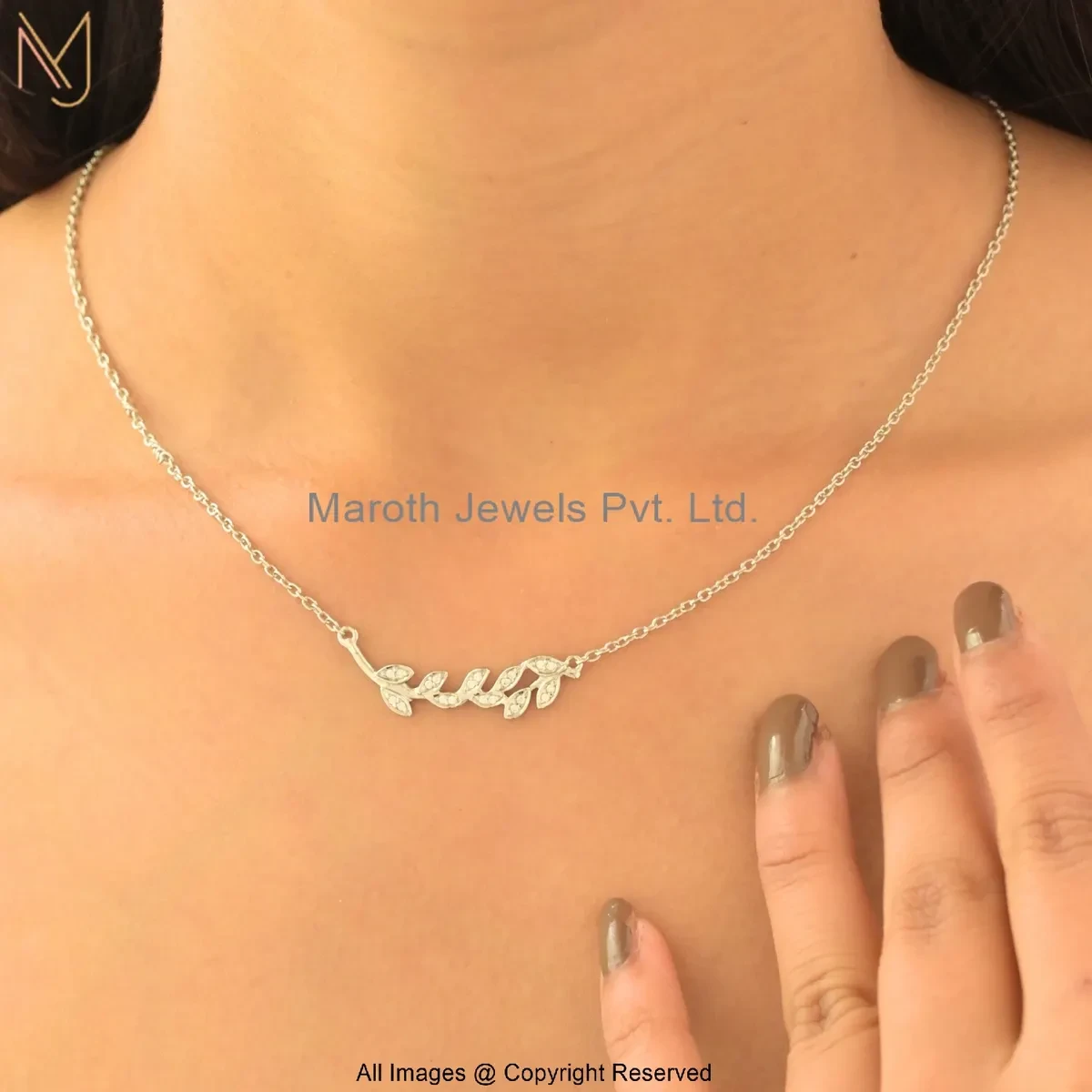925 Silver White Gold Plated Cubic Zircon Classic Leafs Necklace Custom Jewelry