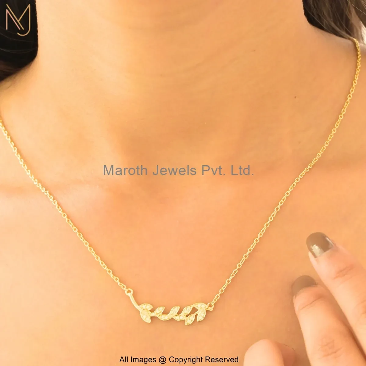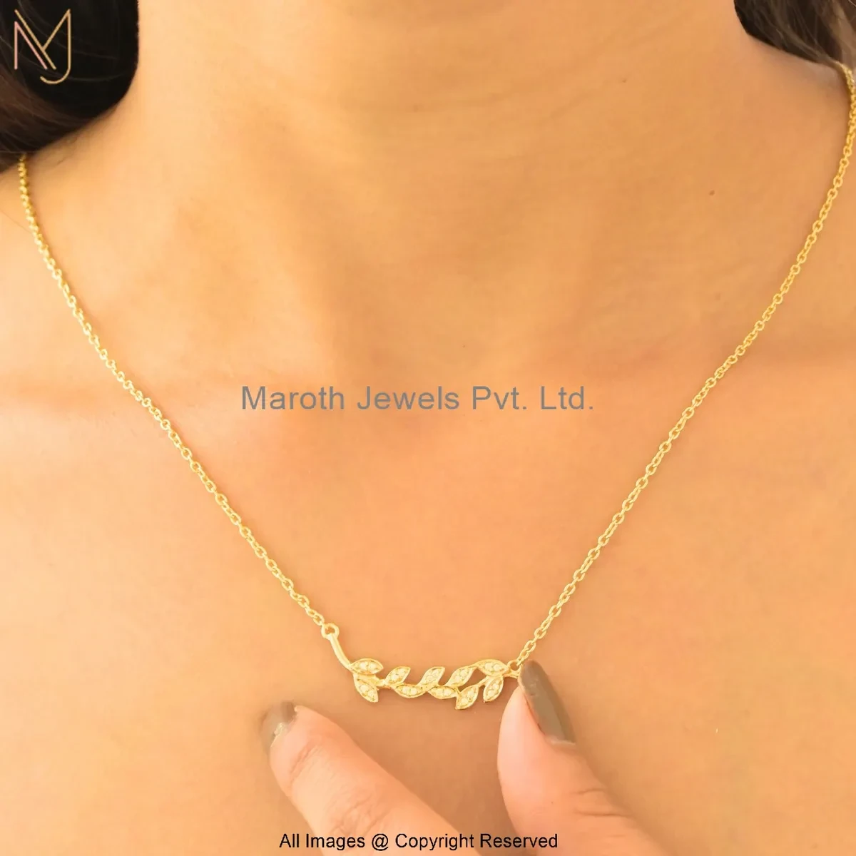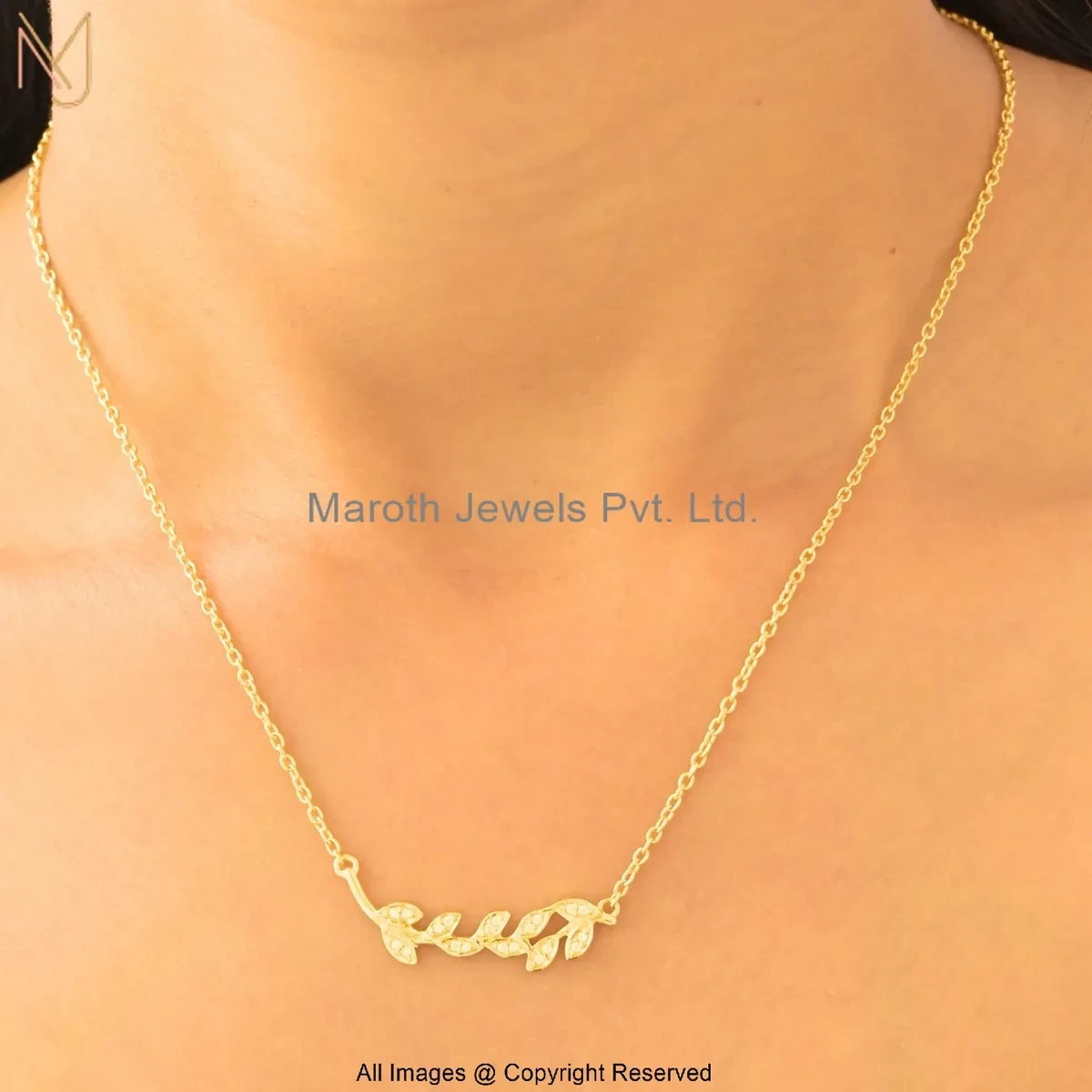 925 Silver White Gold Plated Cubic Zircon Classic Leafs Necklace Custom Jewelry