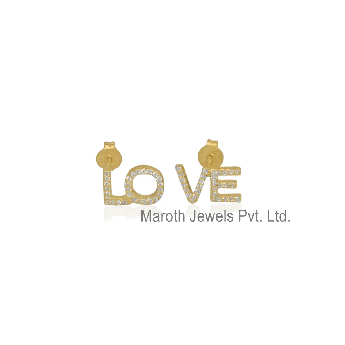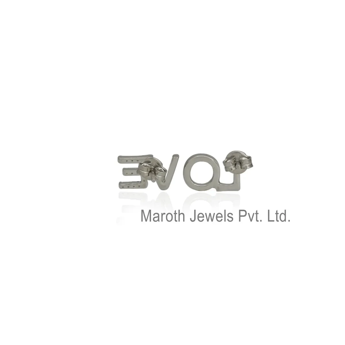 925 Silver White Gold Plated Cubic Zircon Diamond " LOVE " Stud Earring Custom Jewelry