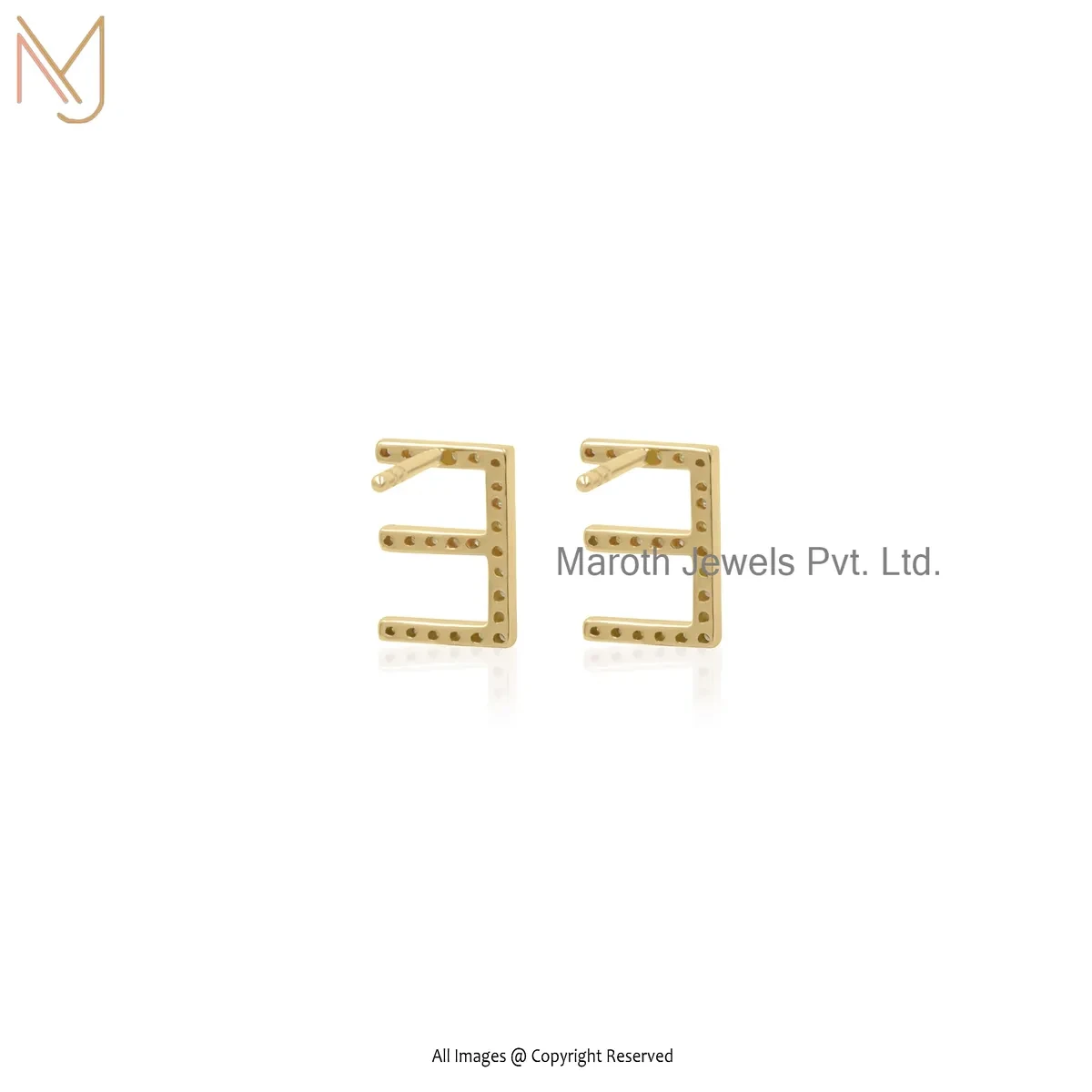 925 Silver White Gold Plated Cubic Zircon Initial Letter Stud Earring Manufacturer