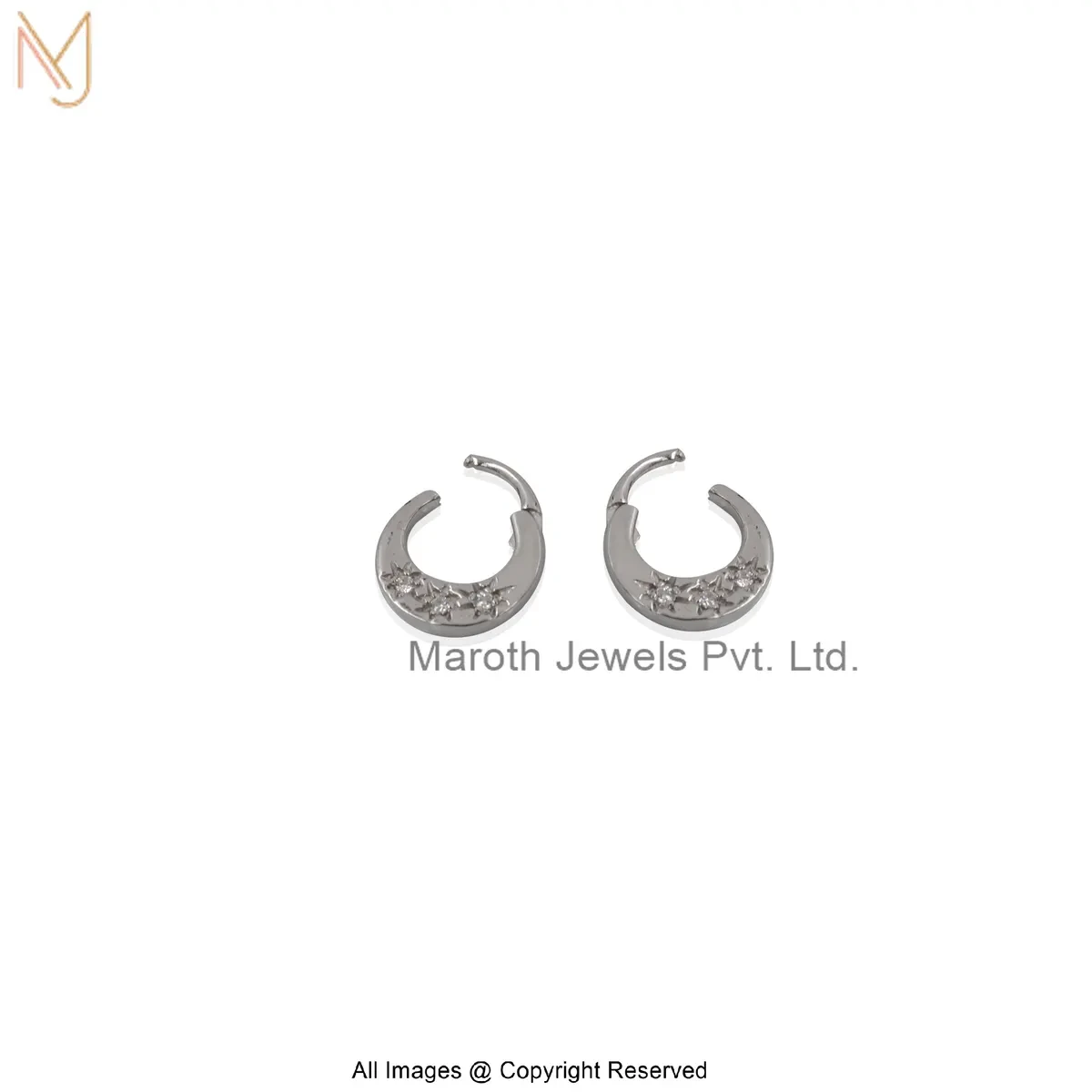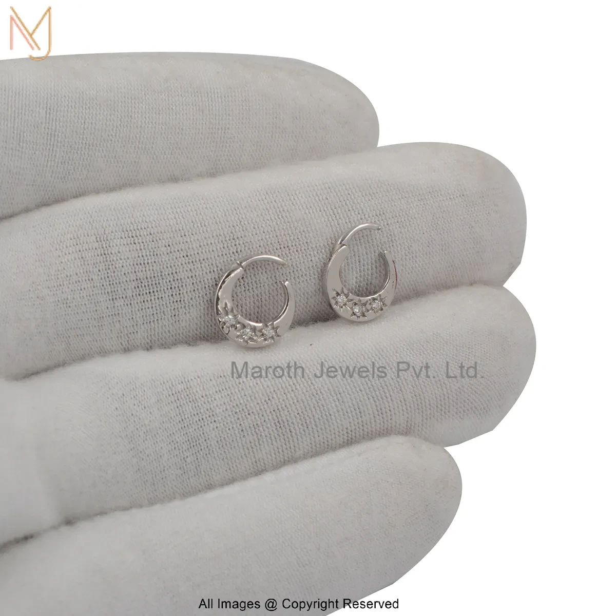 925 Silver White Gold Plated Diamond Cubic Zircon Huggie Hoop Earring Manufacturer