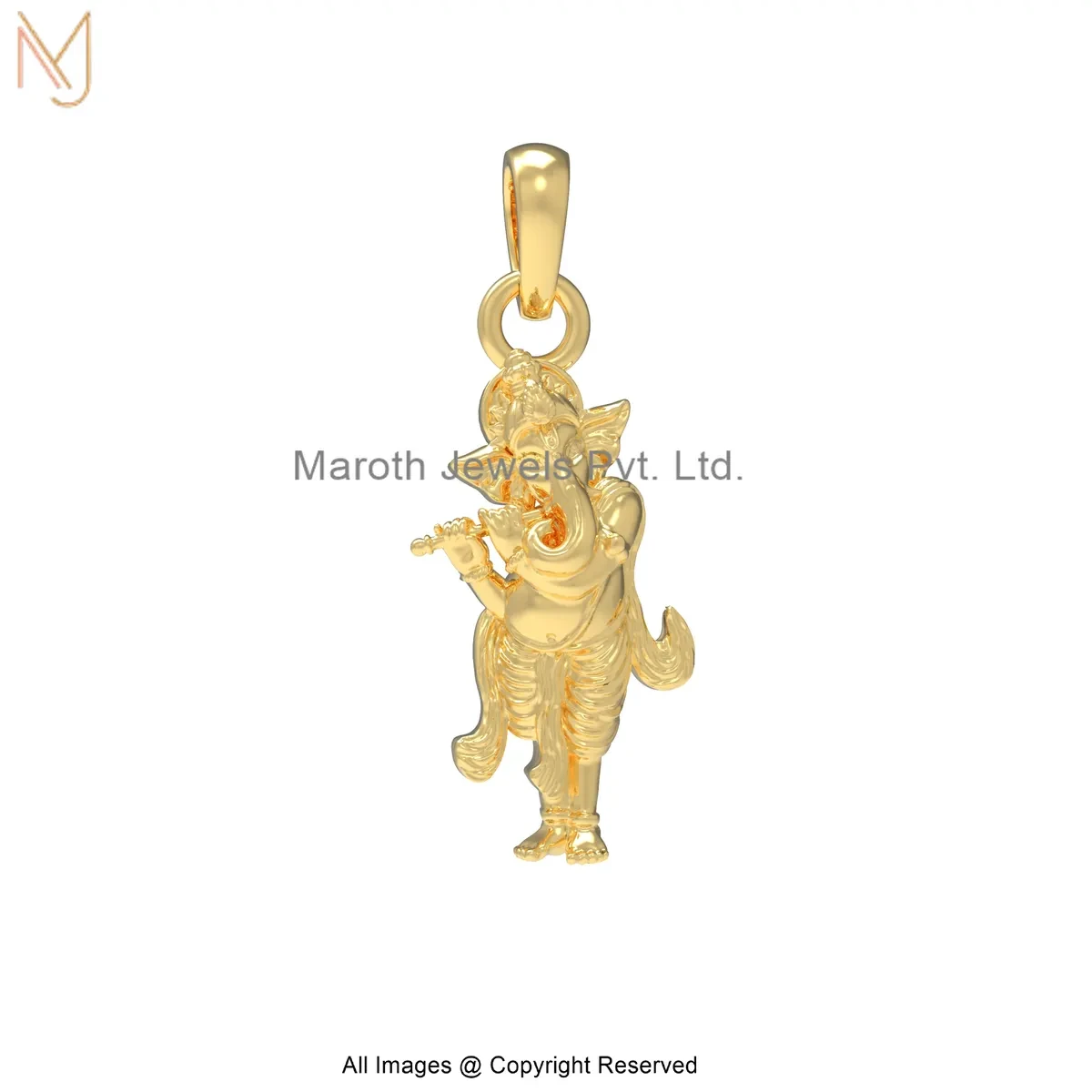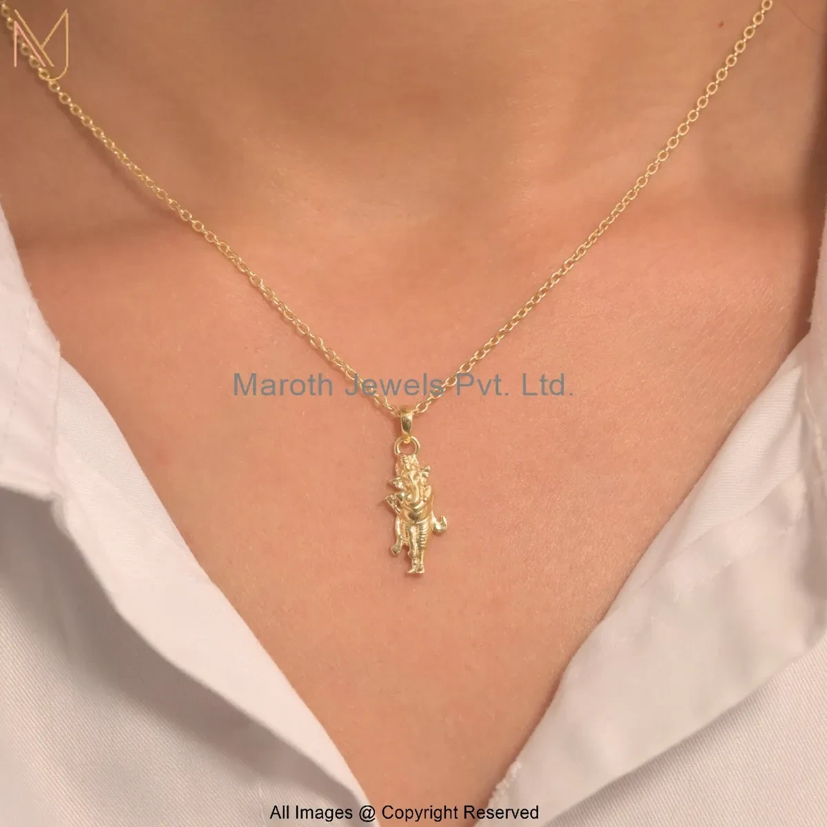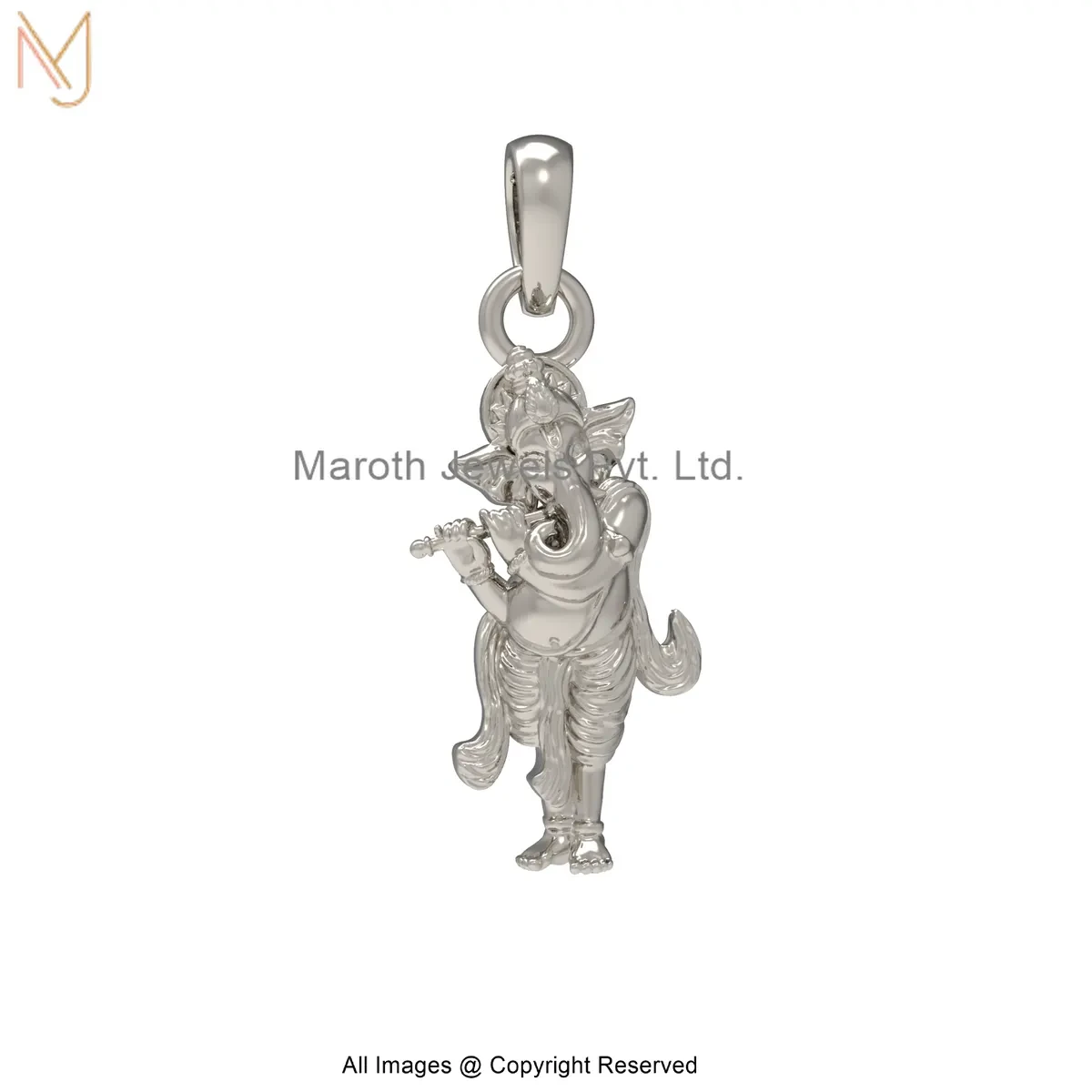925 Silver White Gold Plated Ganesha Playing Flute Necklace Jewelry Supplier