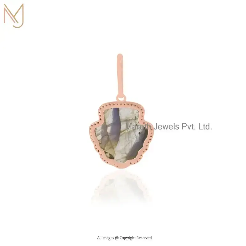 925 Silver White Gold Plated Larimar & Cubic Zircon Carnelian Shell Pendant Jewelry Supplier