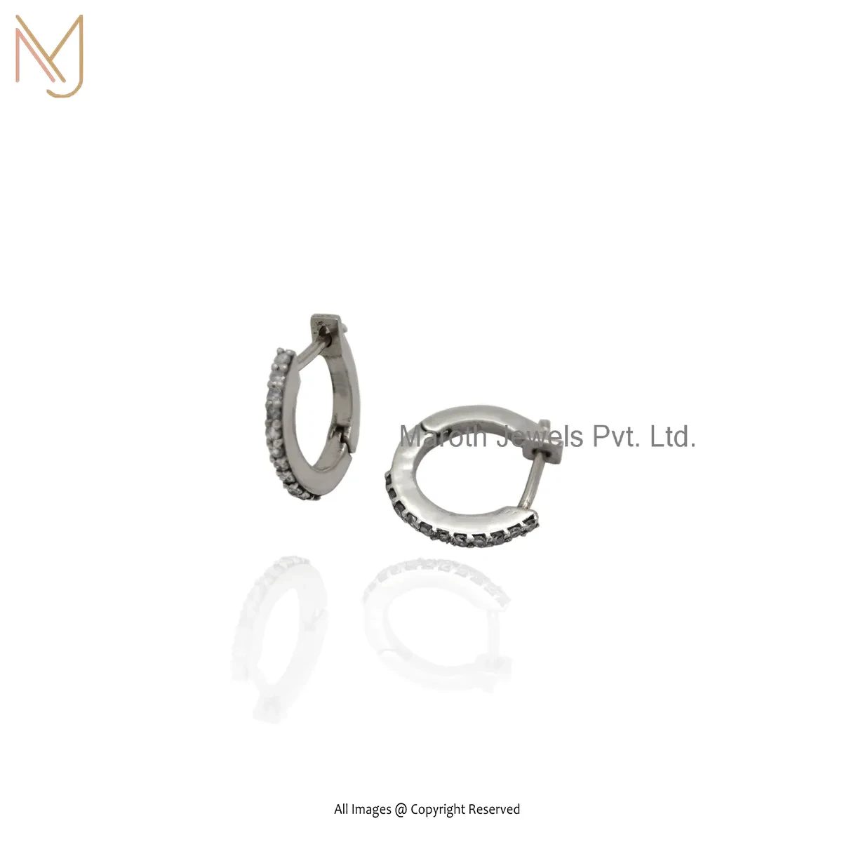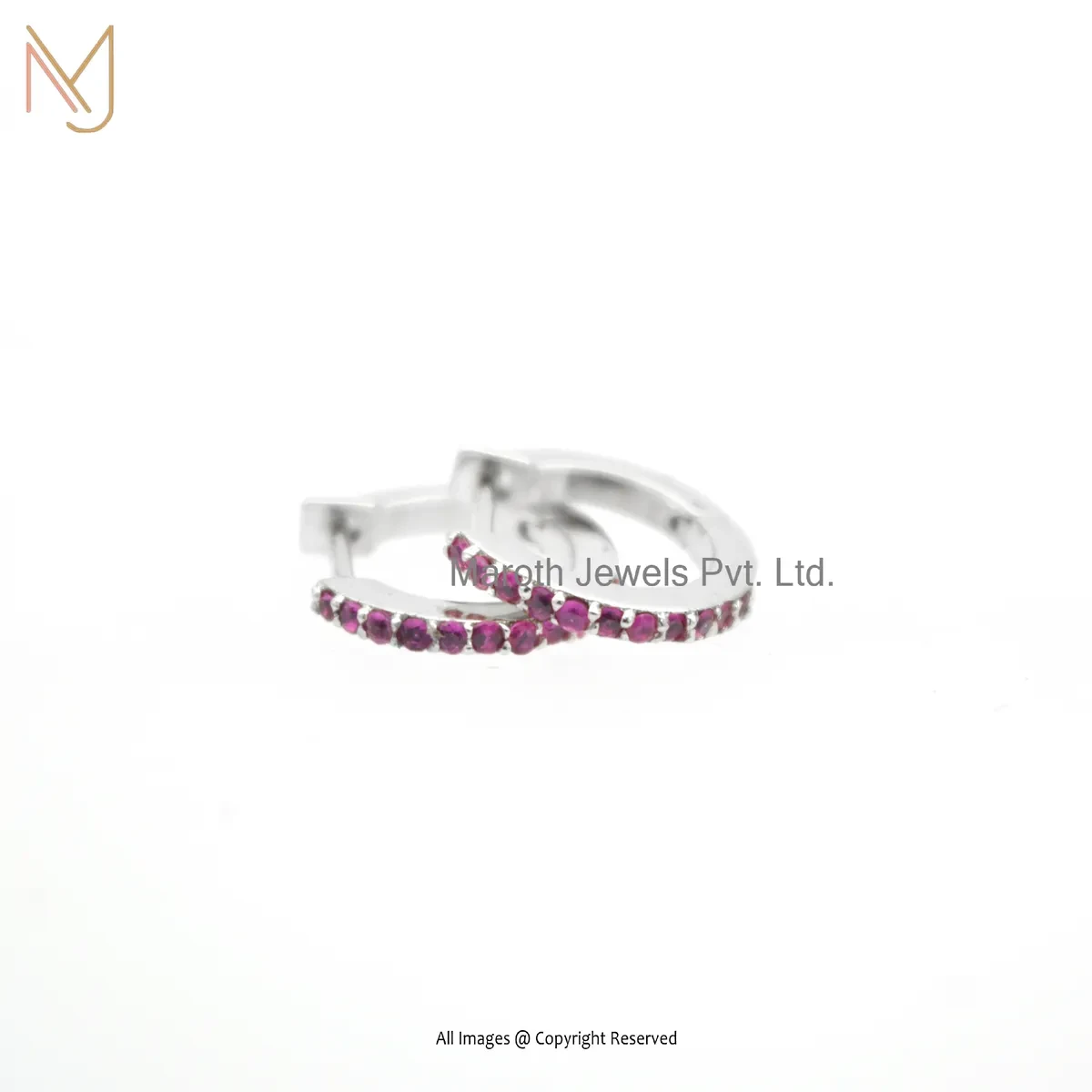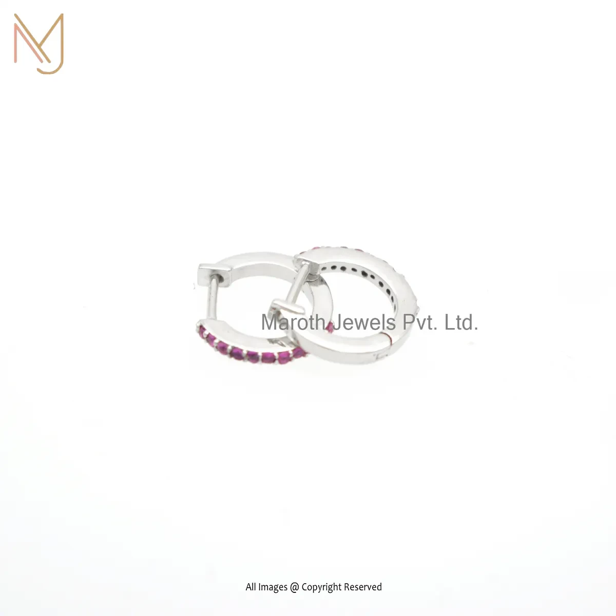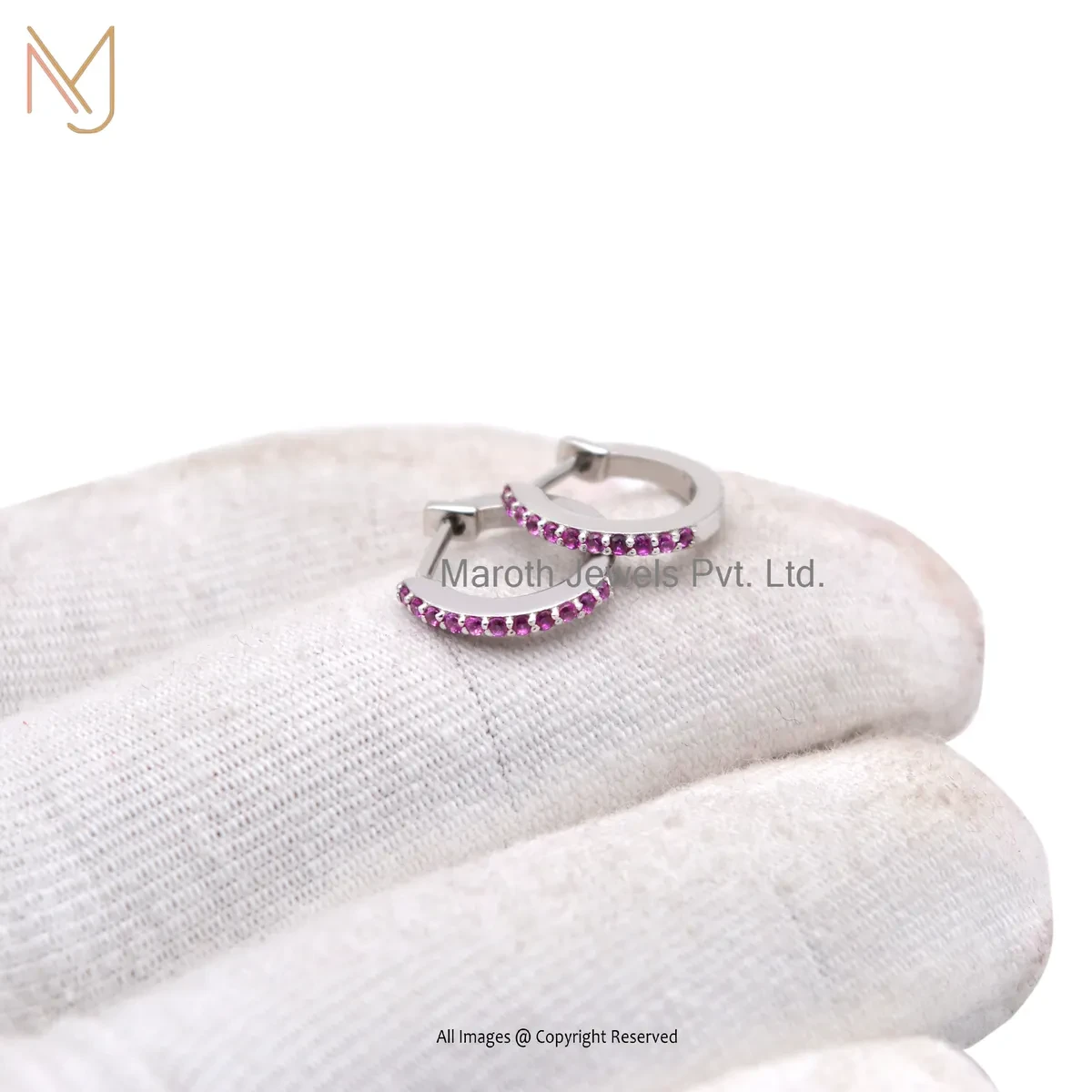 925 Silver White Gold Plated Pink Sapphire Tiny Hoop Huggies Earring Custom Jewelry