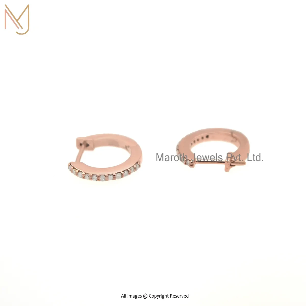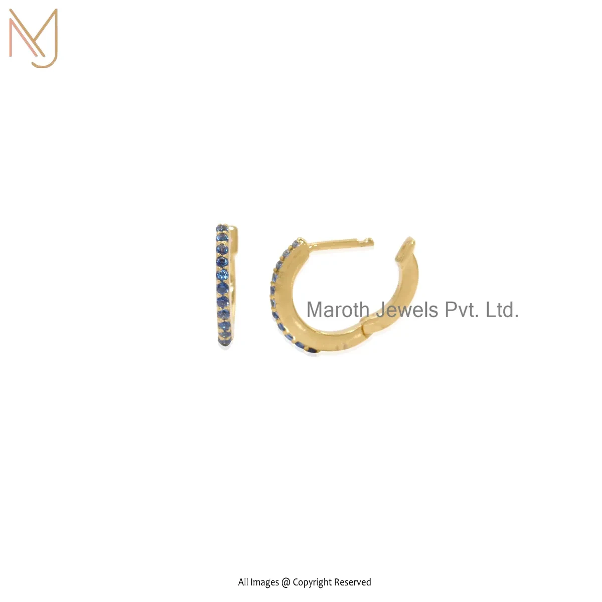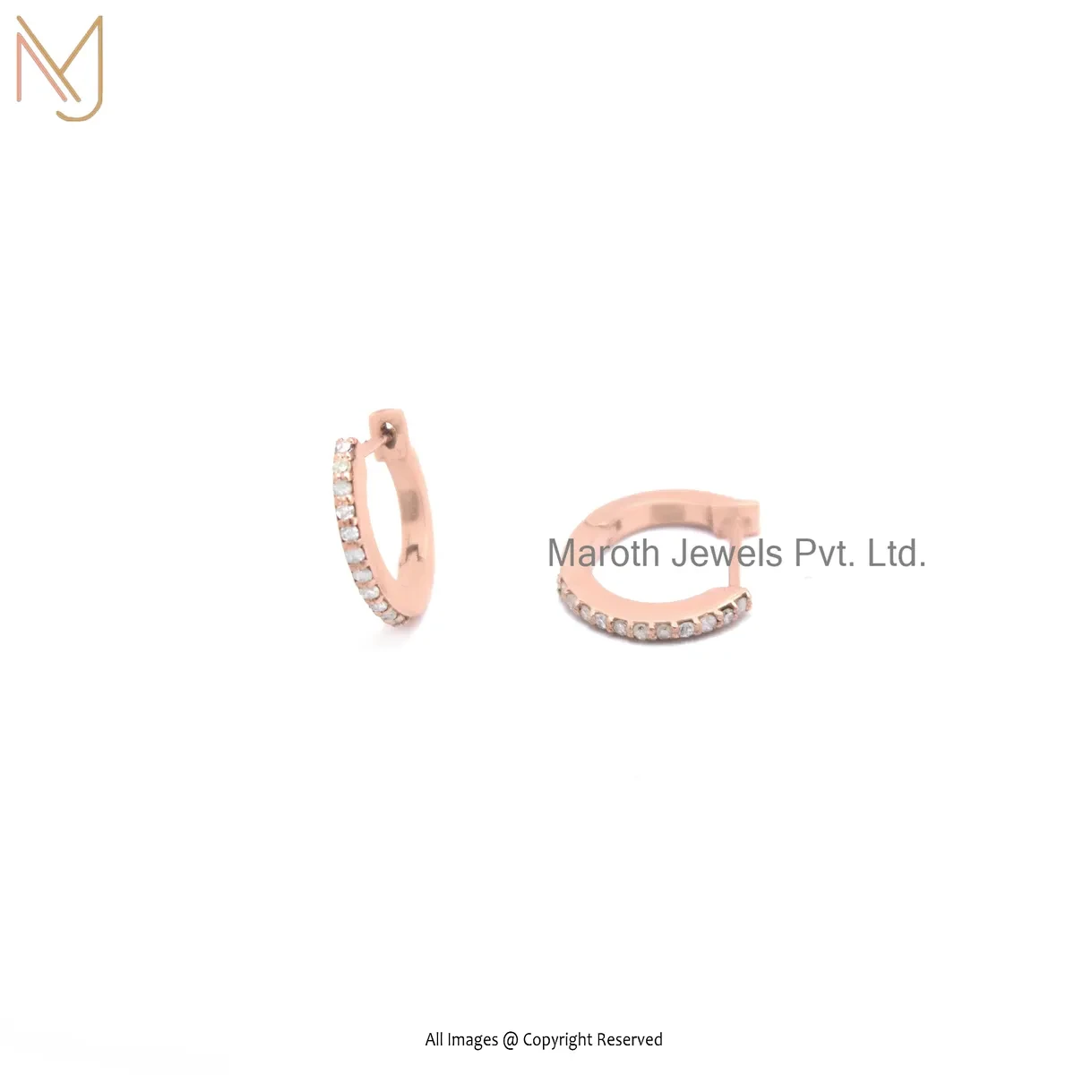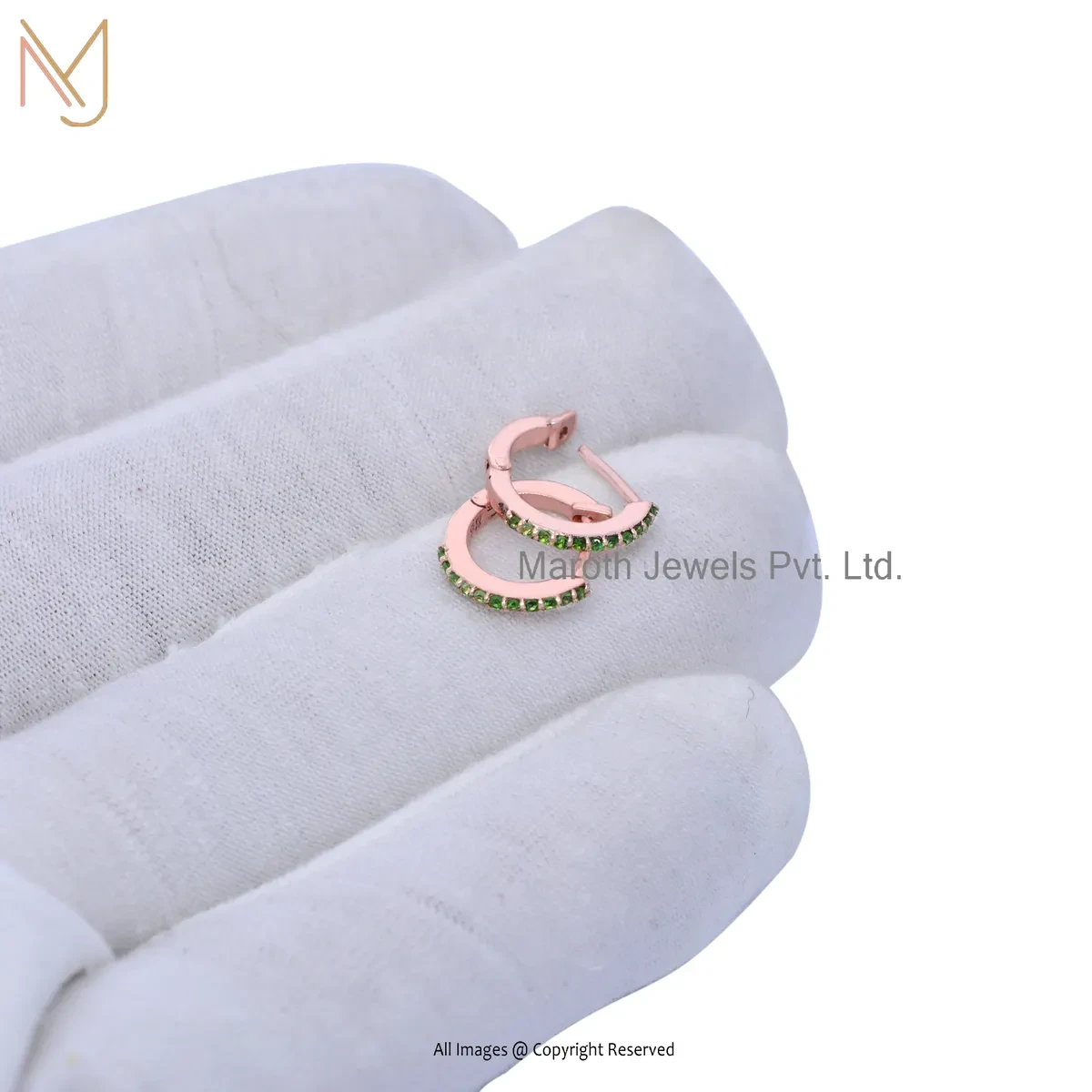 925 Silver White Gold Plated Pink Sapphire Tiny Hoop Huggies Earring Custom Jewelry