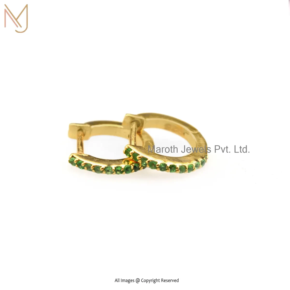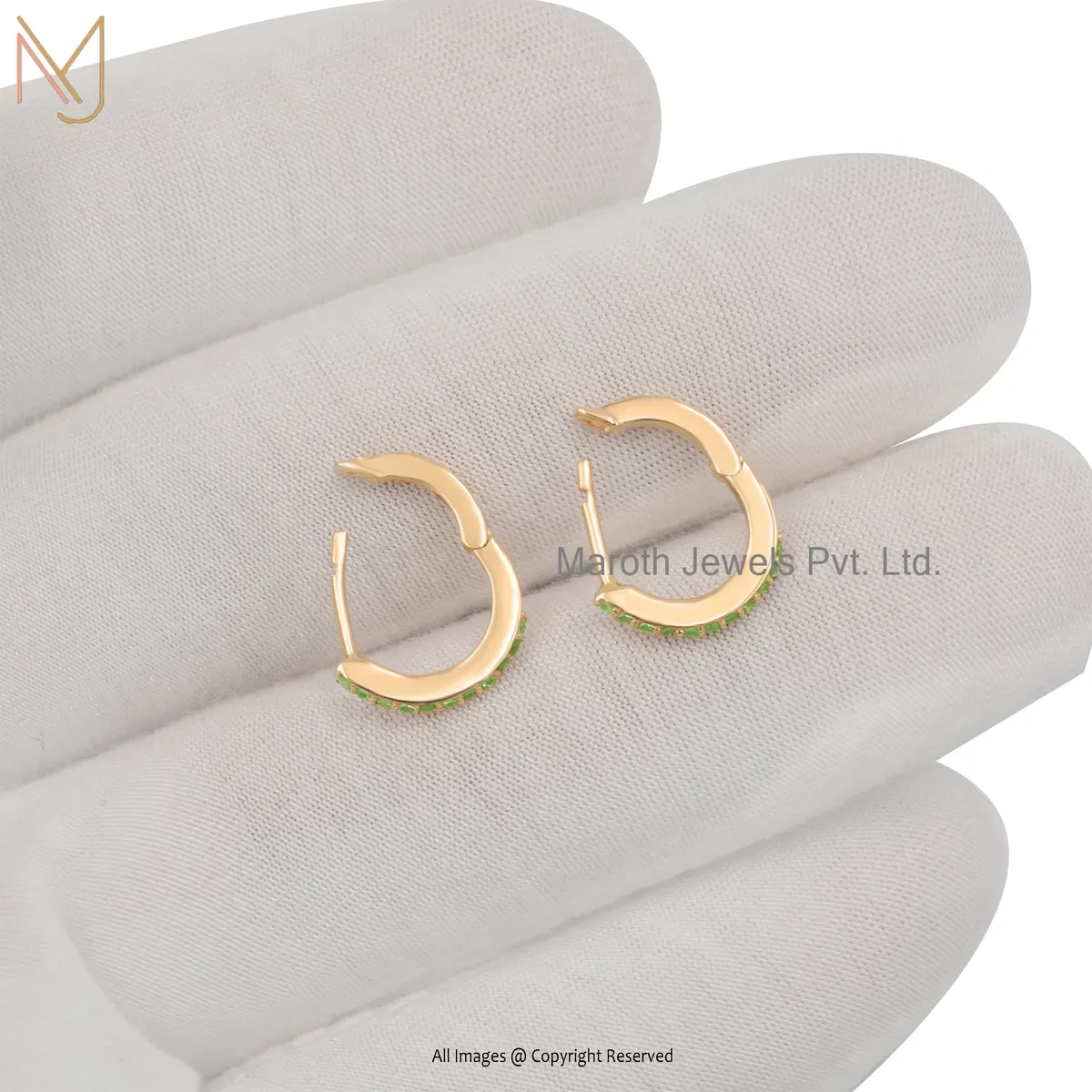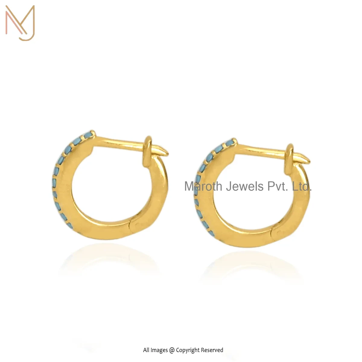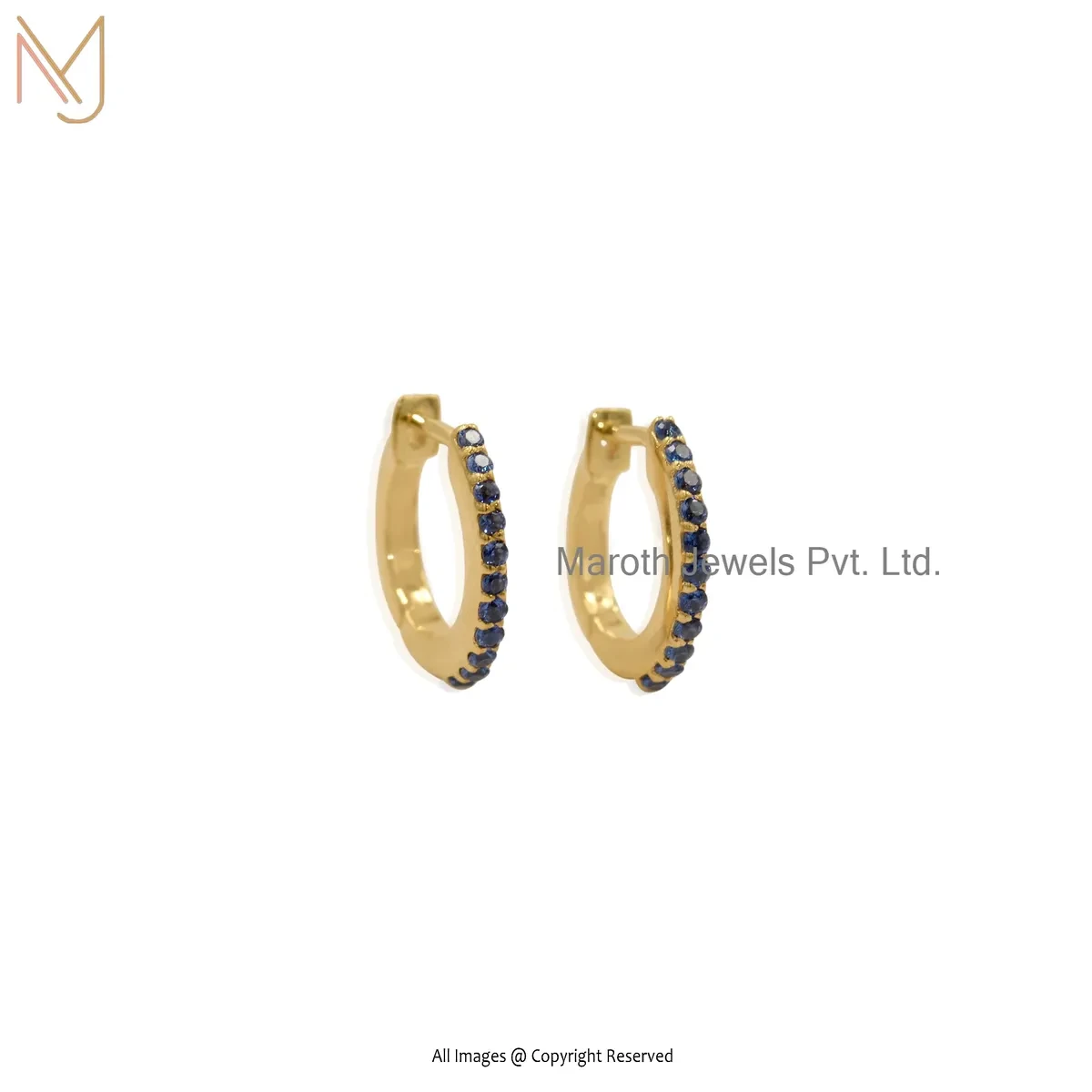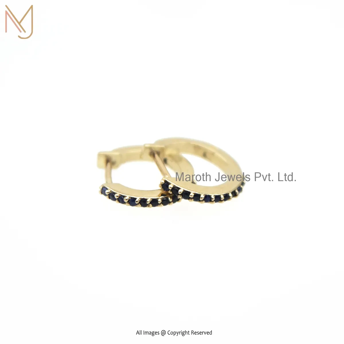 925 Silver White Gold Plated Pink Sapphire Tiny Hoop Huggies Earring Custom Jewelry