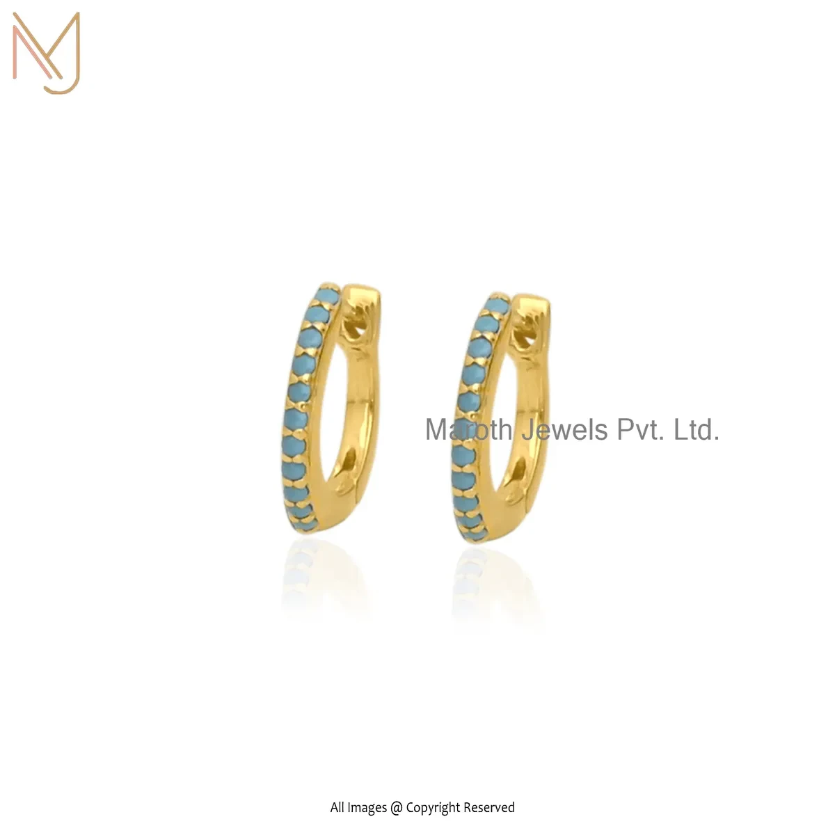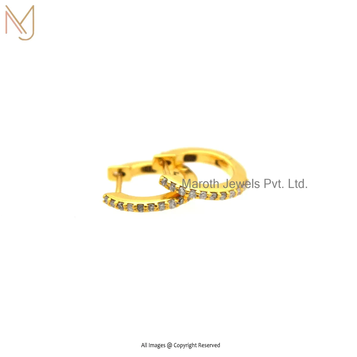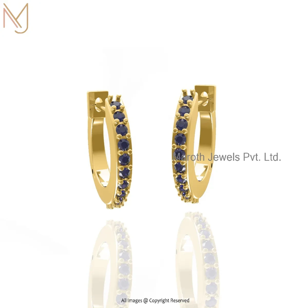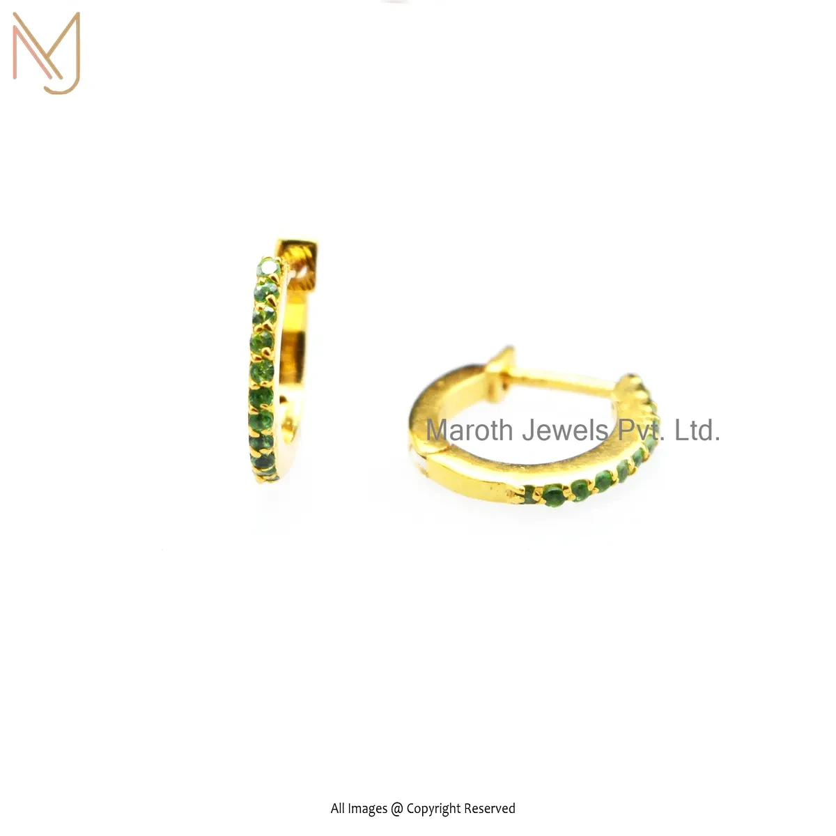 925 Silver White Gold Plated Pink Sapphire Tiny Hoop Huggies Earring Custom Jewelry