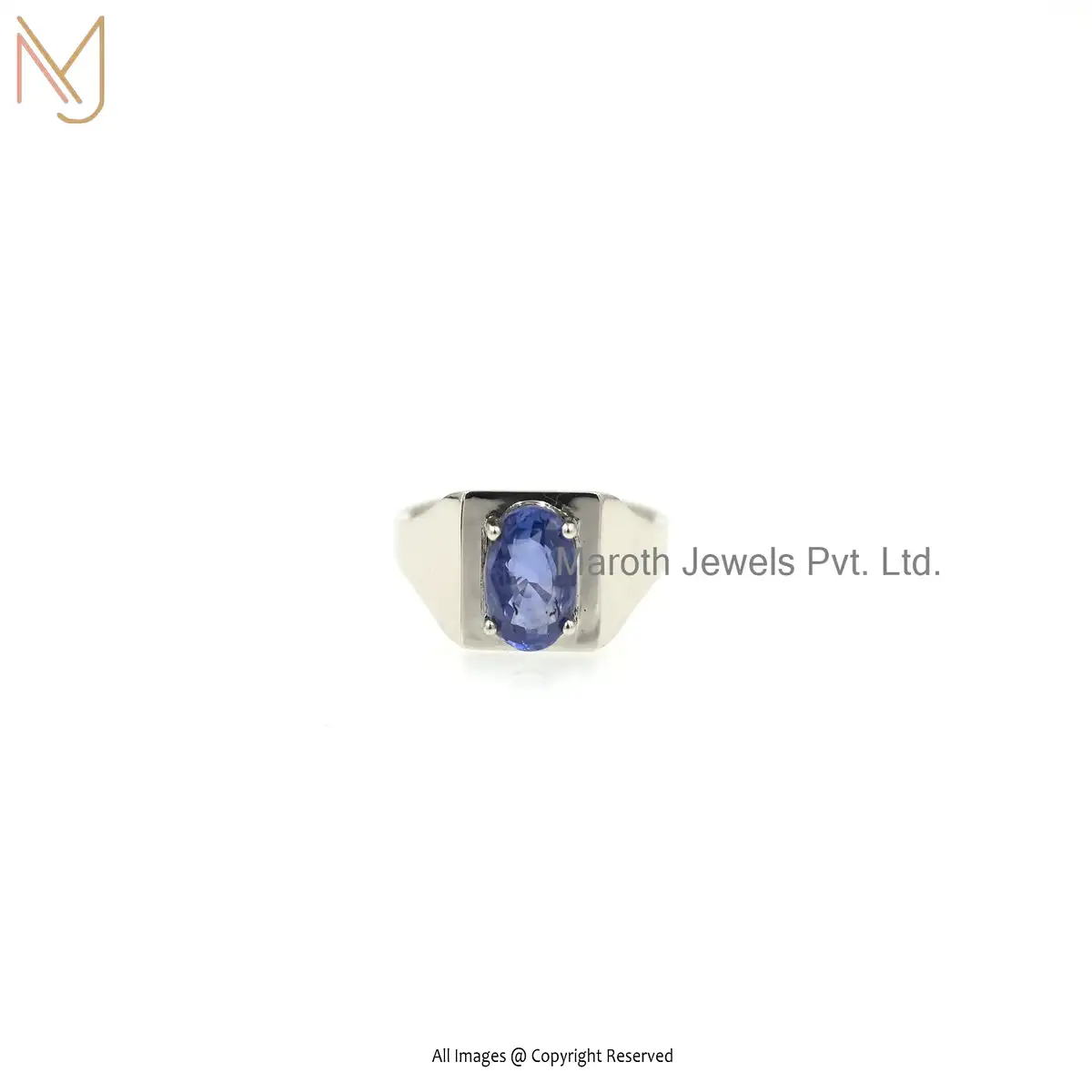 925 Silver White Gold Plated Tanzanite Oval Shep Bend Ring Jeweliry Manufacturer