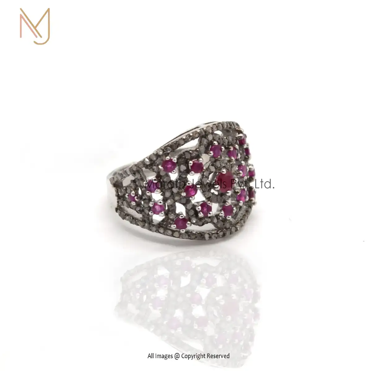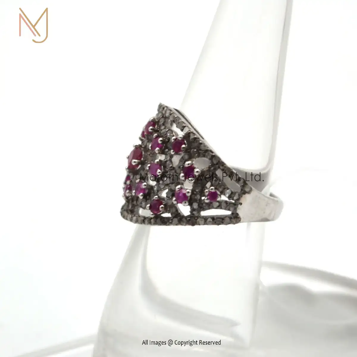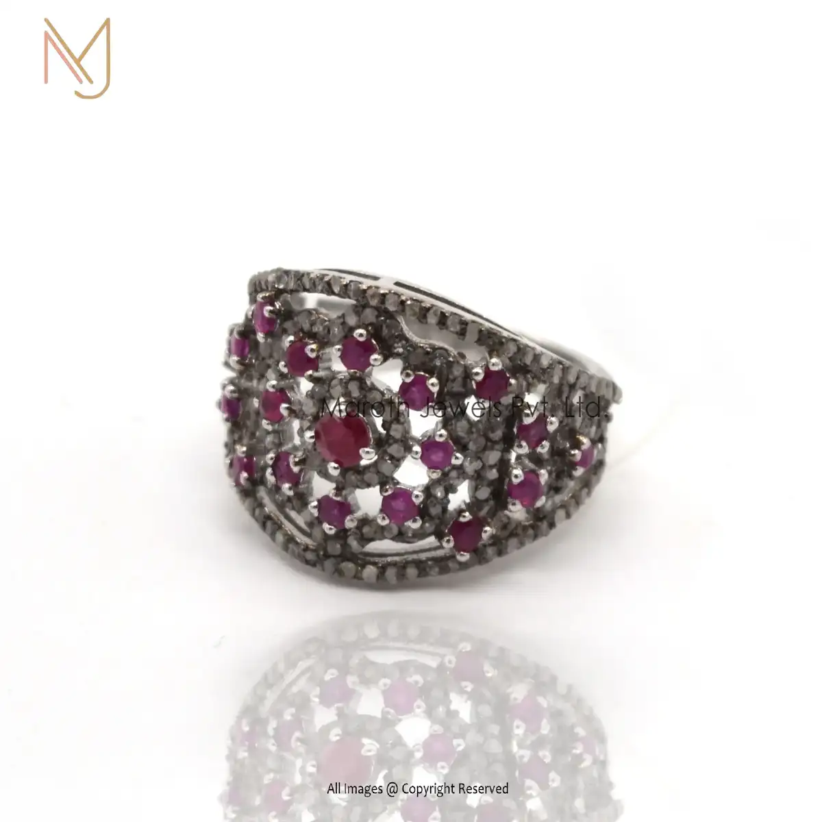 925 Silver White Gold Rhodium Pave Diamond And Ruby Gemstone Vintage Ring Jewelry Manufacturer