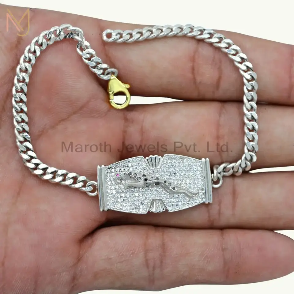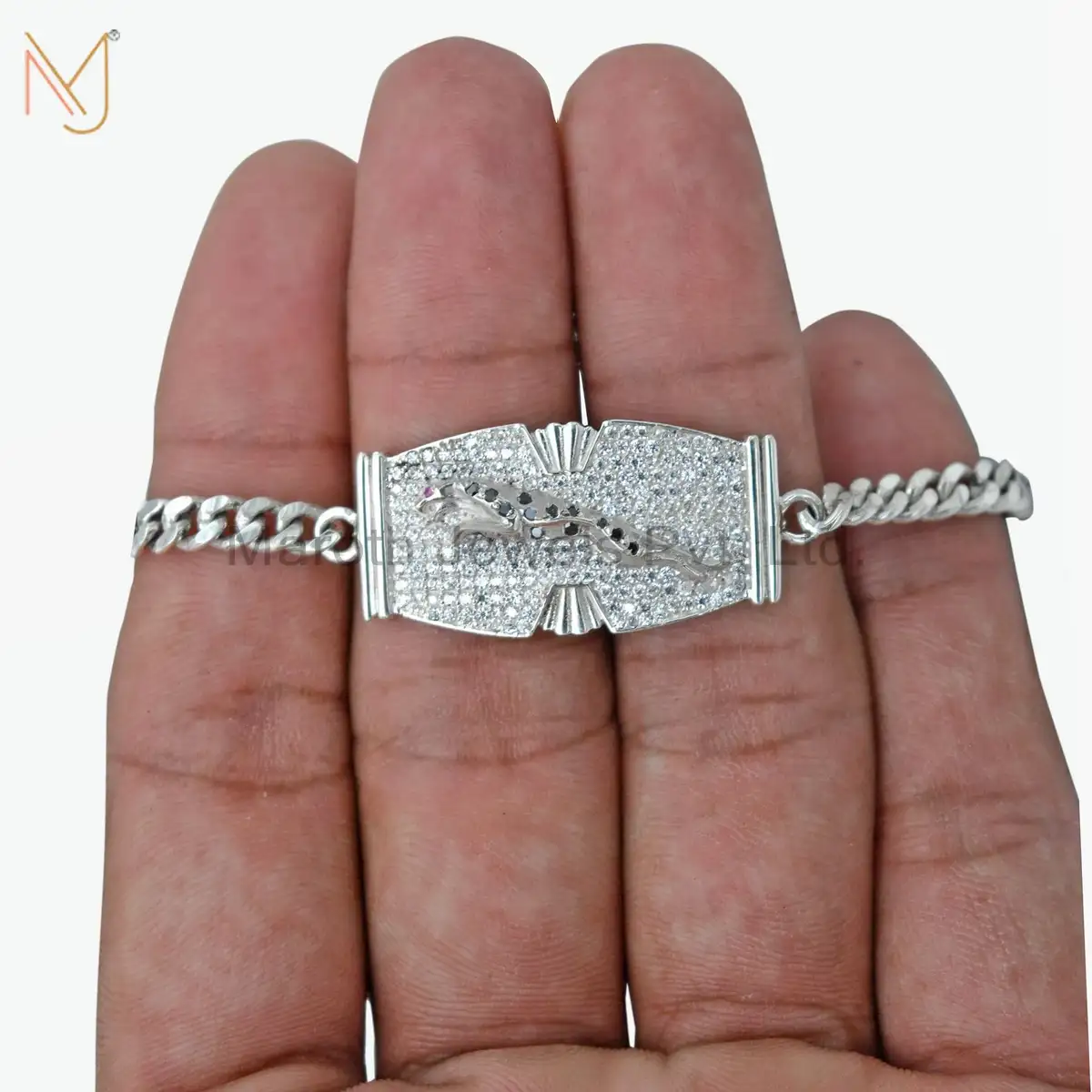 925 Silver White Gold Rhodium Plated Pave Diamond Bracelet Custom Jewelry