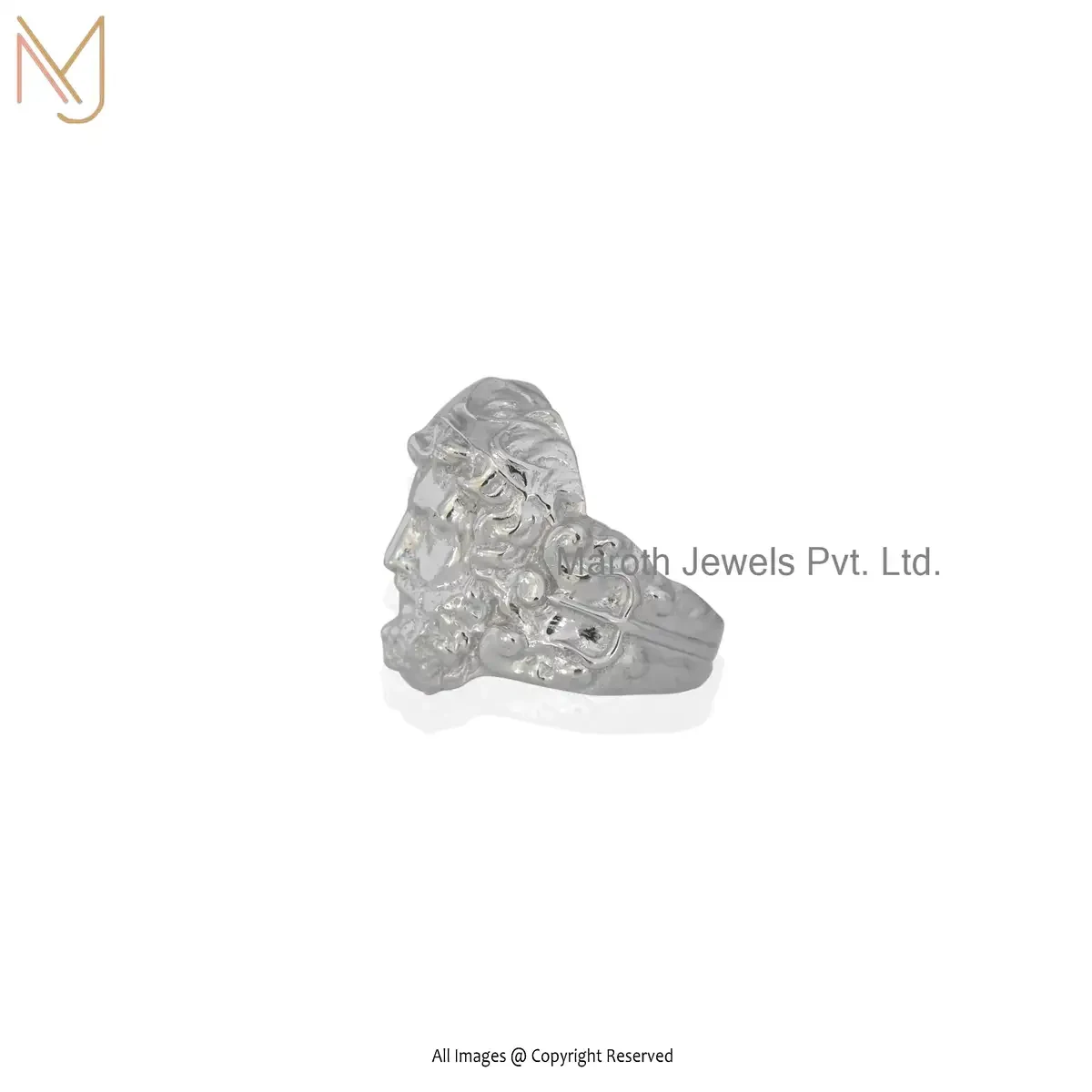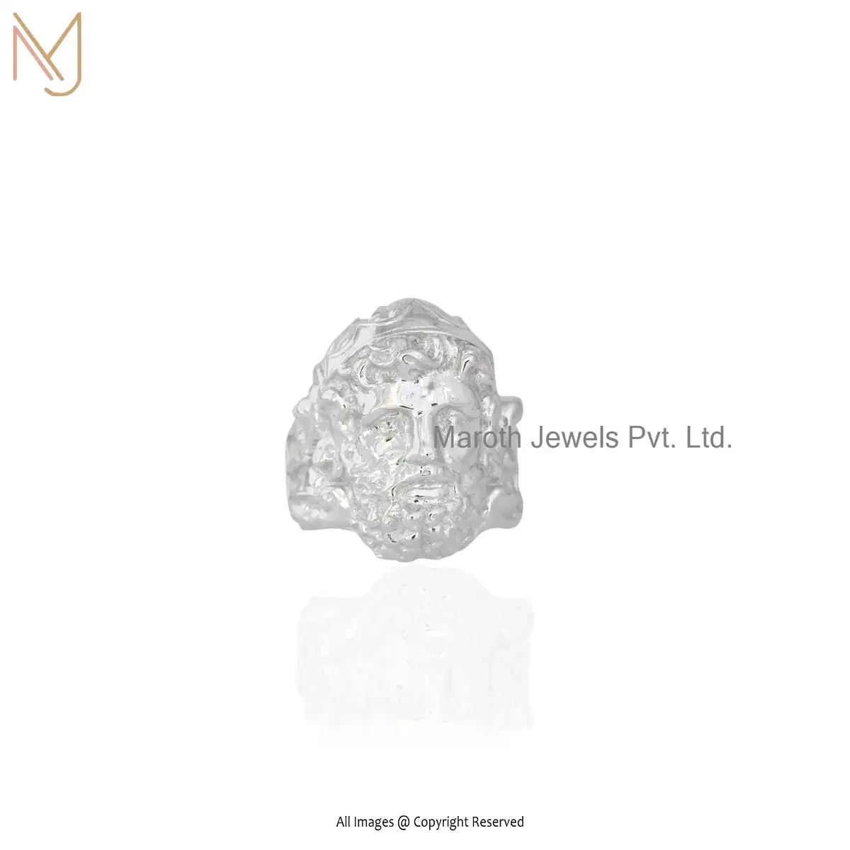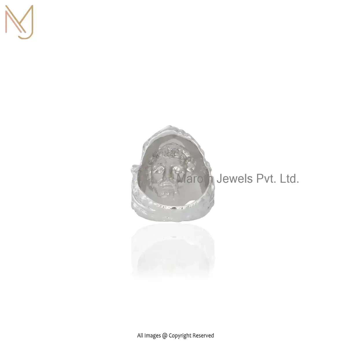 925 Silver White Gold Sea King Poseidon Face Ring Jewelry Manufacturer