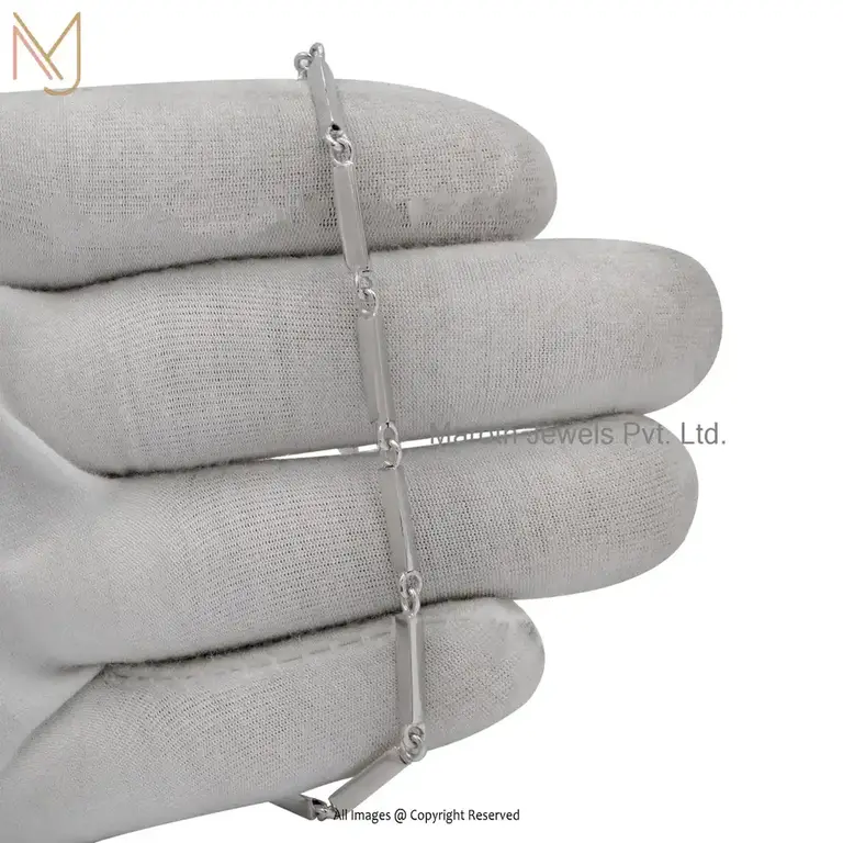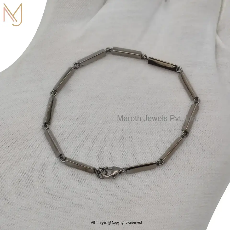 925 Silver White Gold Tube Bar Link Chain Bracelet Custom Jewelry