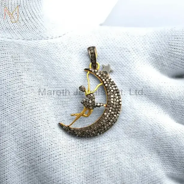 925 Silver Yelllow Gold Rhodium Pave Diamond Half Moon Dancing Queen Charm Pendant Jewelry USA