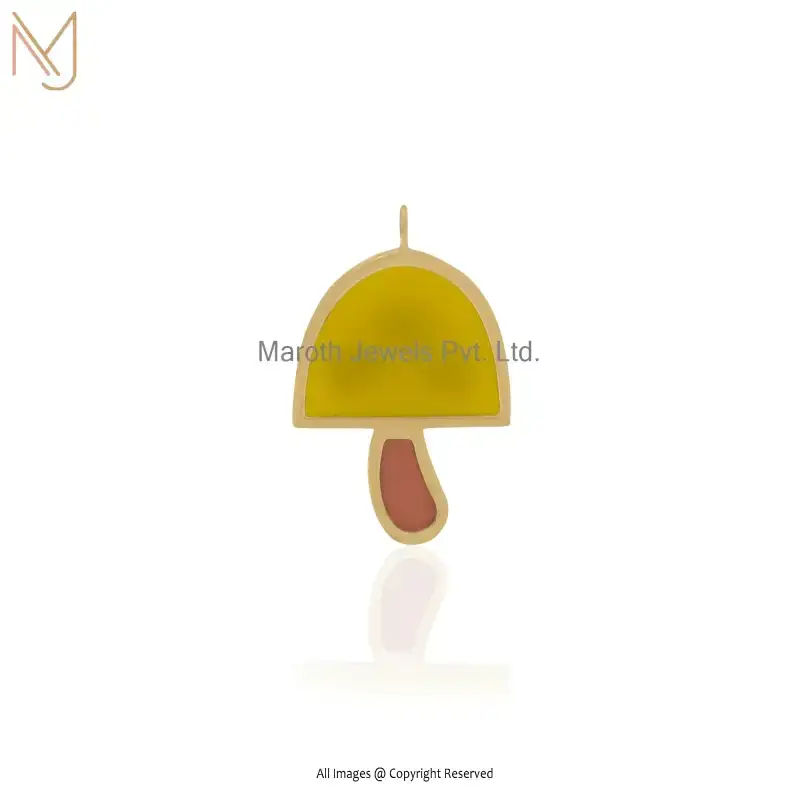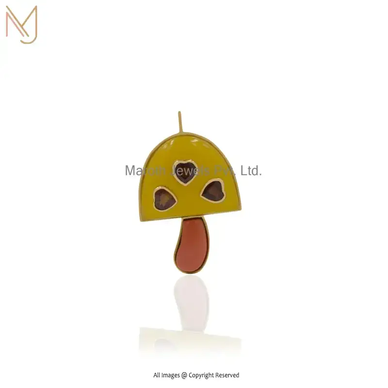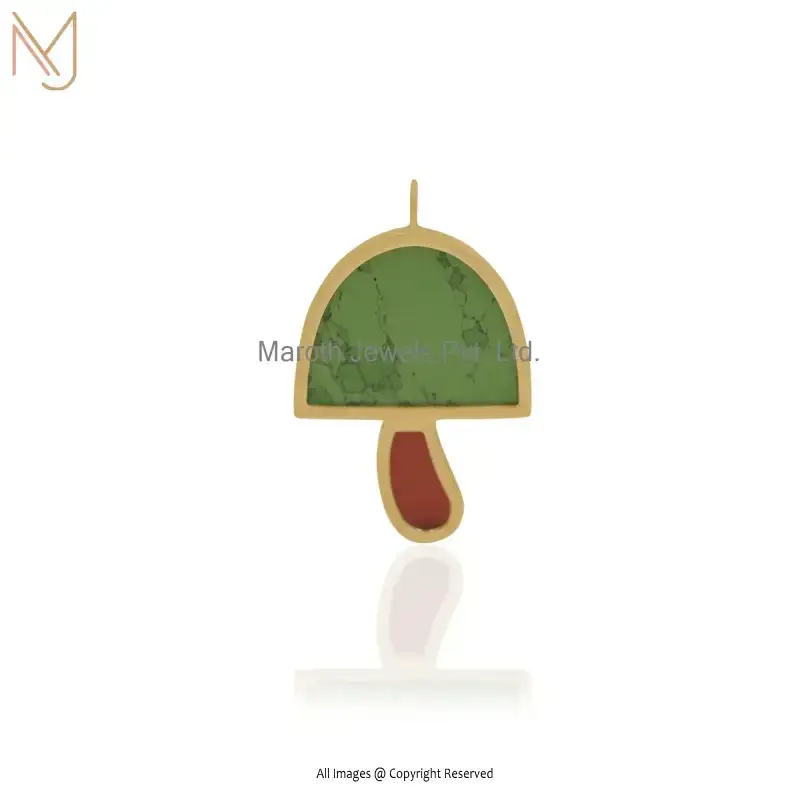 925 Silver Yellow Gold Aventurine Coral & Heart Orange CZ Gemstone Mushroom Pendant USA