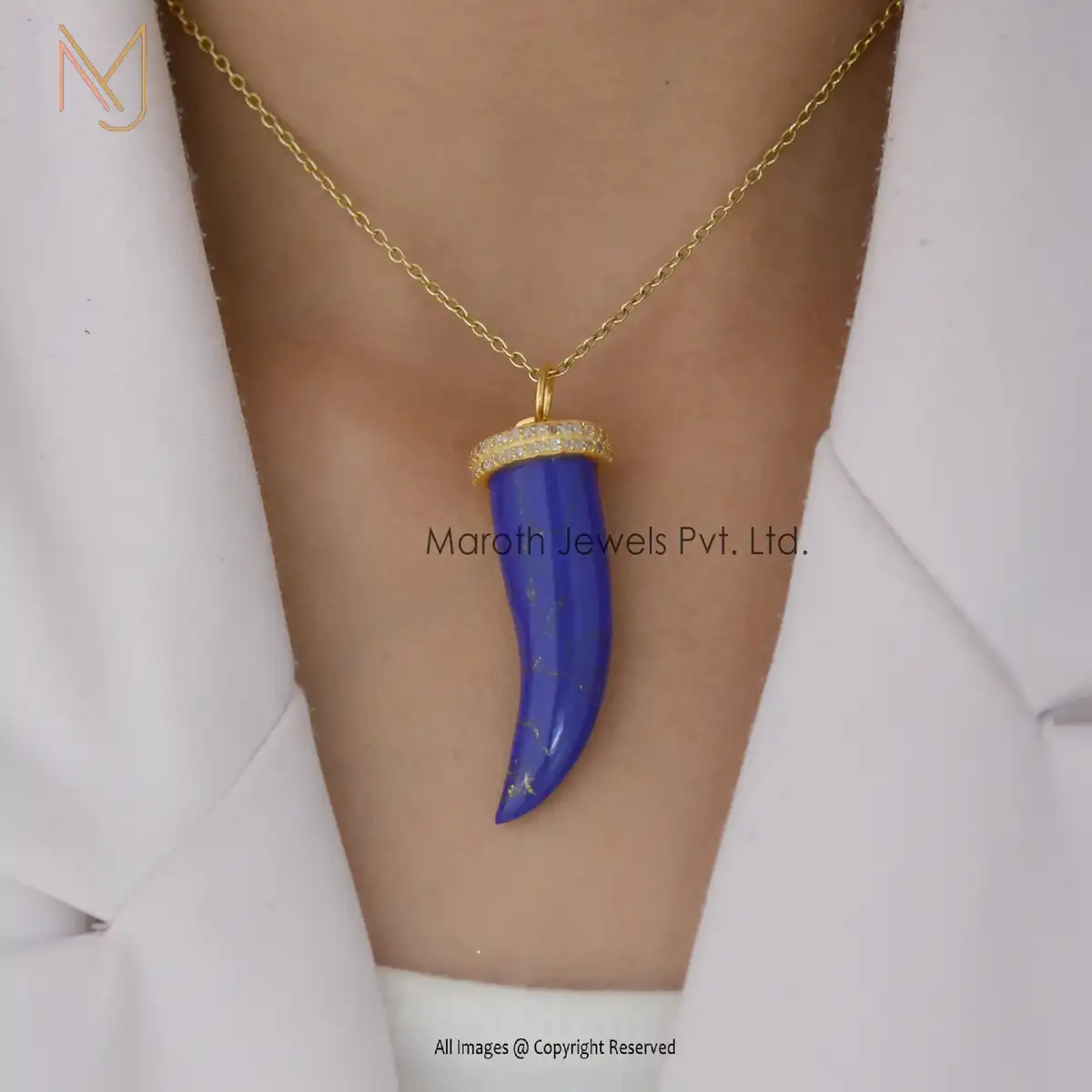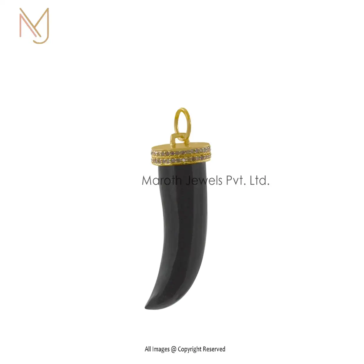 925 Silver Yellow Gold Black Onyx & Diamond Horn Pendant Manufacturer