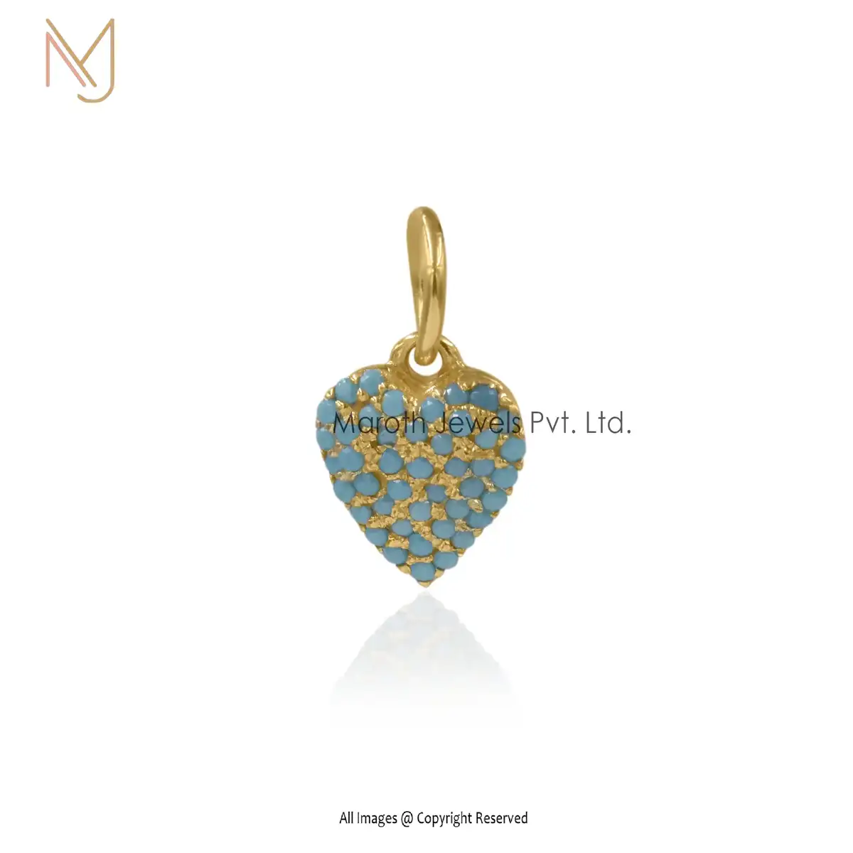 925 Silver Yellow Gold Blue Sapphire Diamond Heart Charm Pendant Custom Jewelry