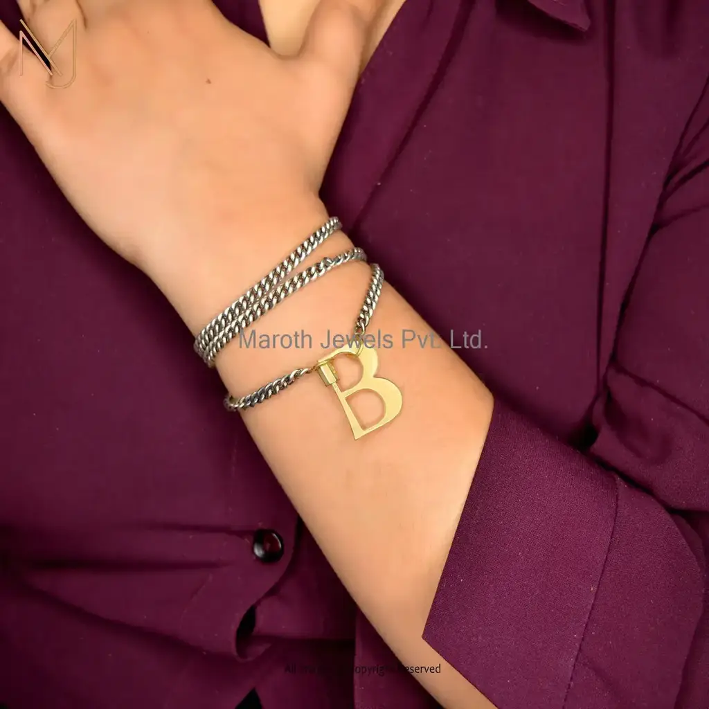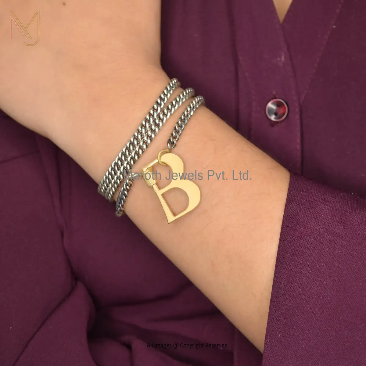 925 Silver Yellow Gold Carabiner B Oxidized Curb Chain Bracelet Jewelry Manufacturer