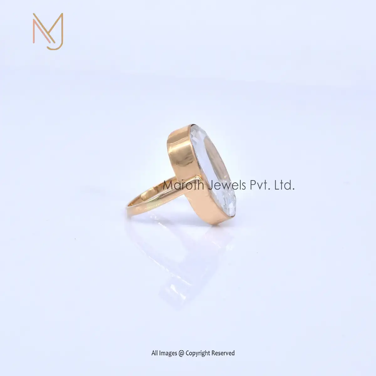 925 Silver Yellow Gold Crystal Quartz With Diamond Baguettes Shaker Ring Manufacturer