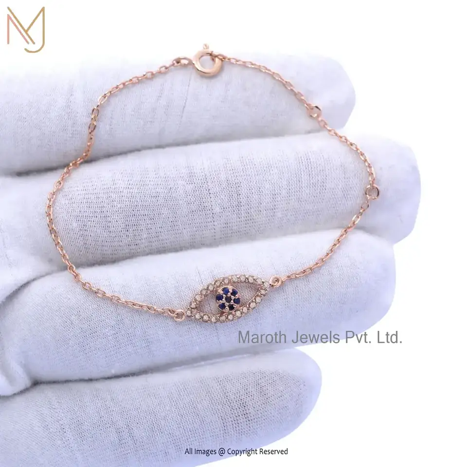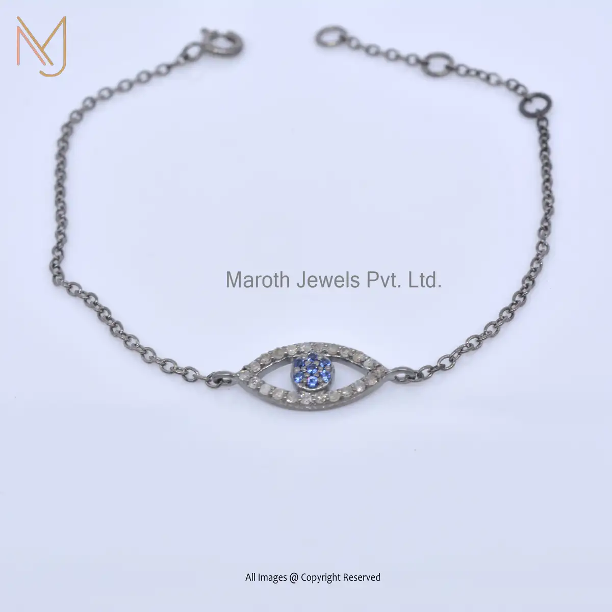 925 Silver Yellow Gold Diamond Blue Sapphire Gemstone Evil Eye Cable Chain Bracelet USA