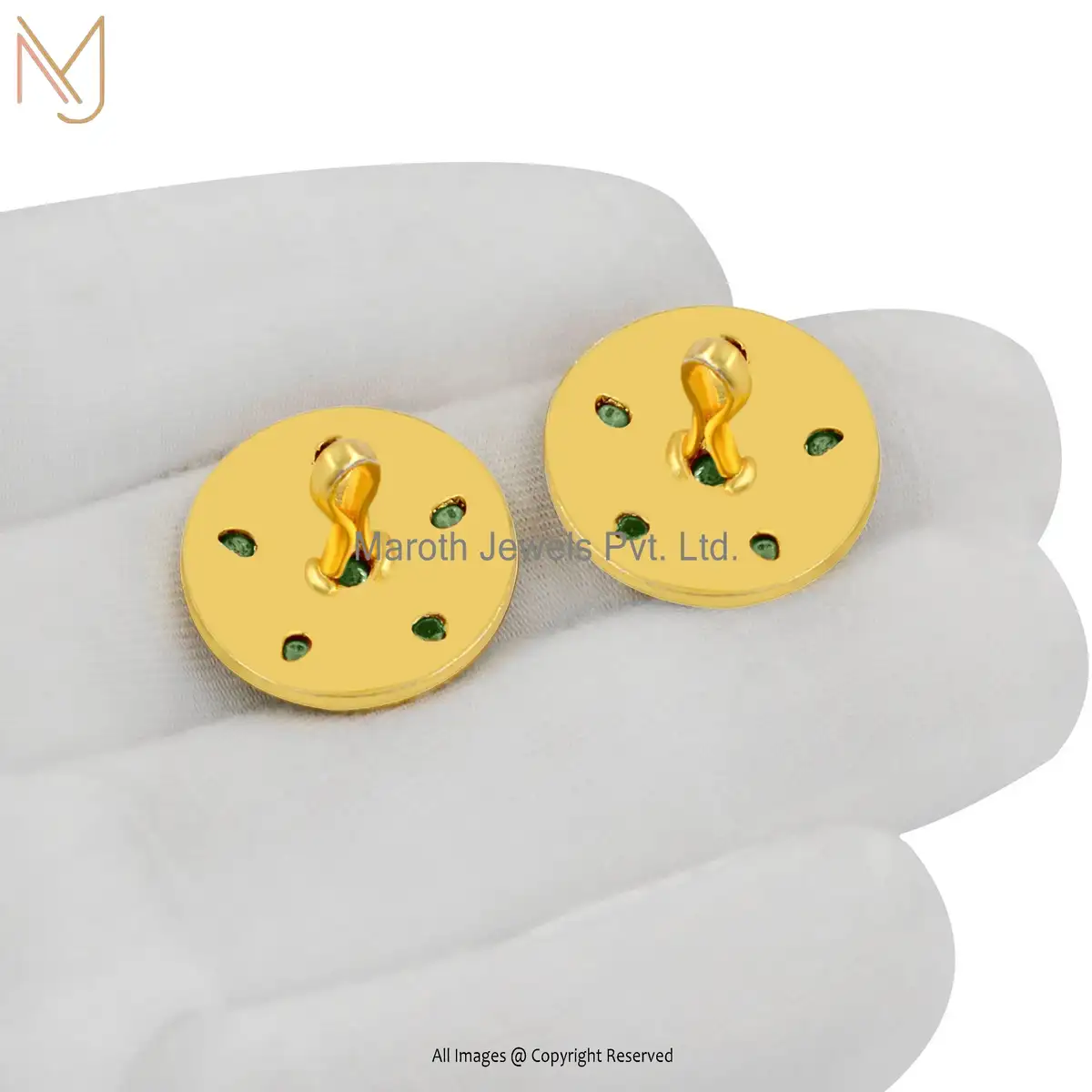 925 Sterling Silver Yellow Gold Plated Diamond Multi Enamel Color Cufflinks Jewelry Manufacturer