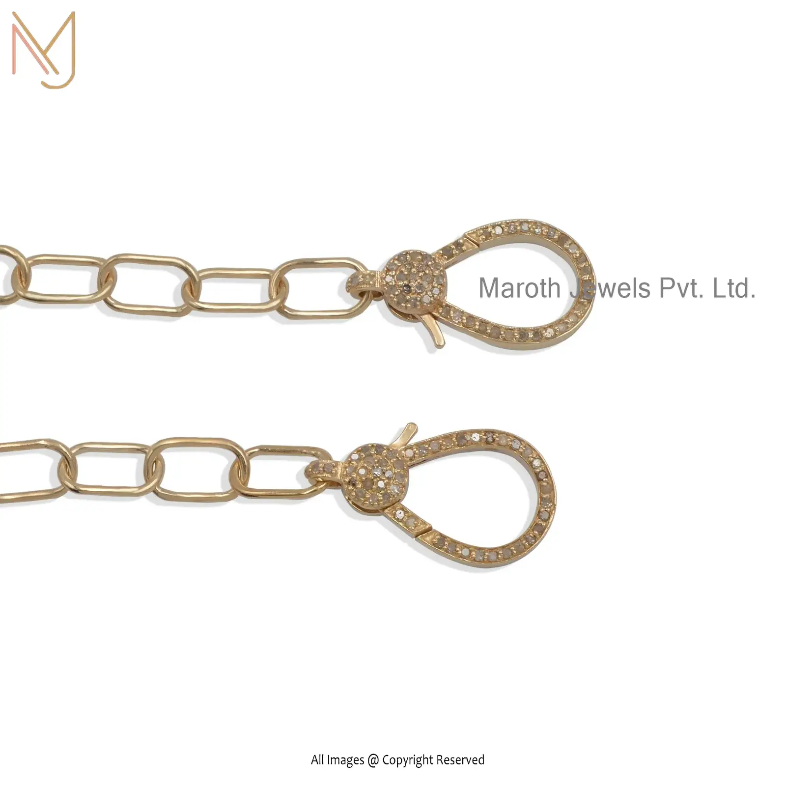925 Silver Yellow Gold Diamond On Both Side Lobaster Lock Necklace Manufacturer