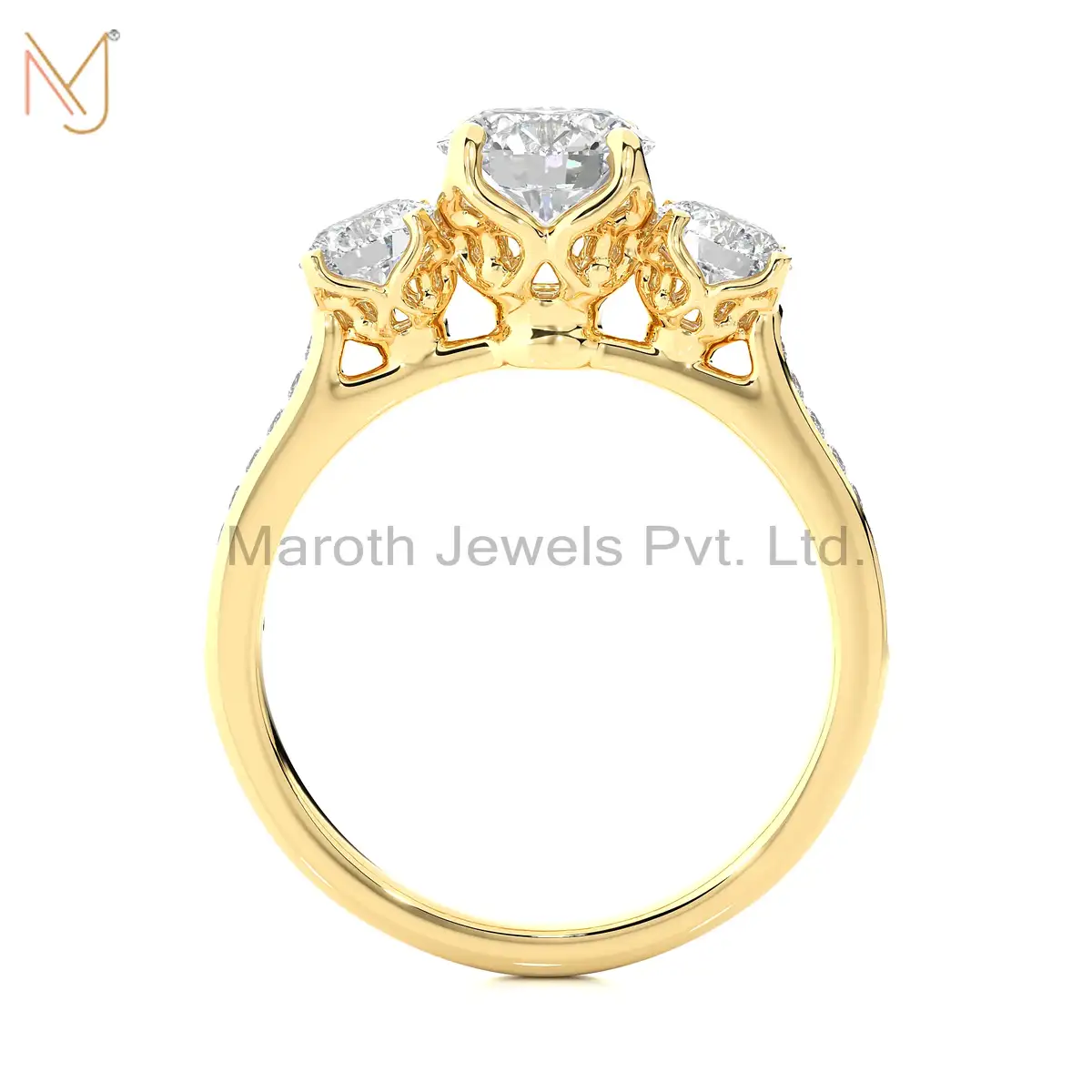 925 Silver Yellow Gold Diamond Round Ring Manufacturer
