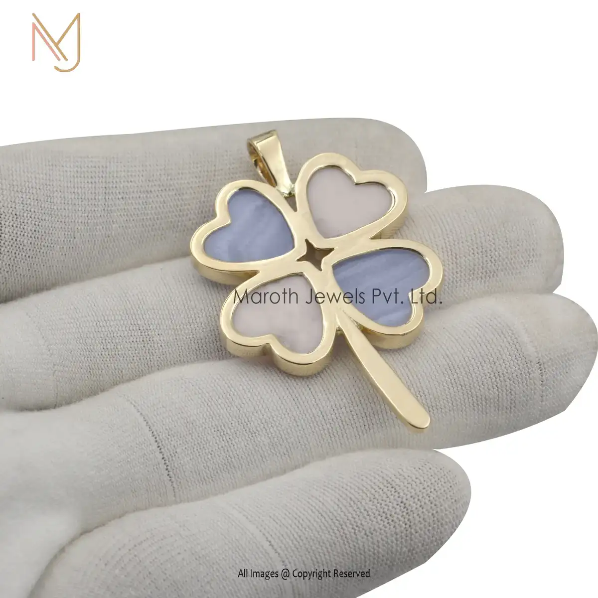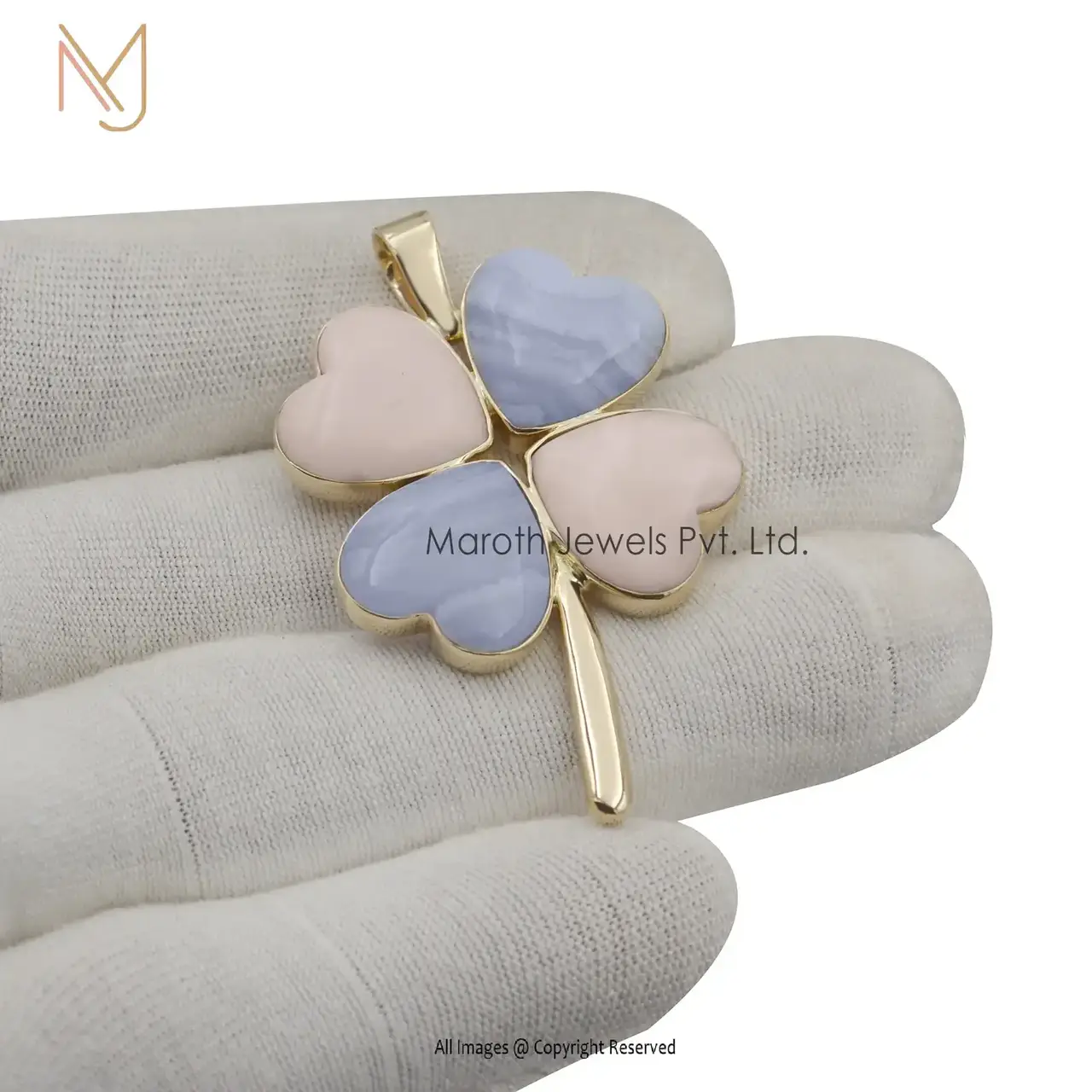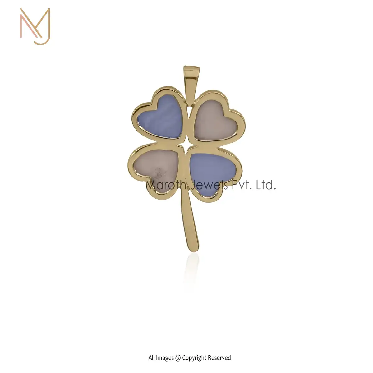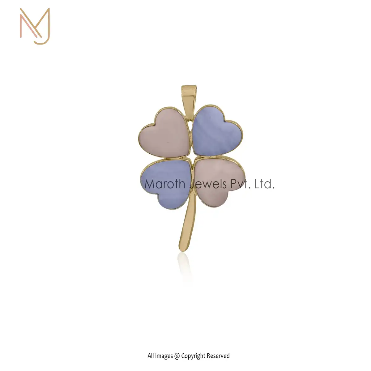 925 Silver Yellow Gold Flower Gemstone Pendant Handmade Jewelry Supplier