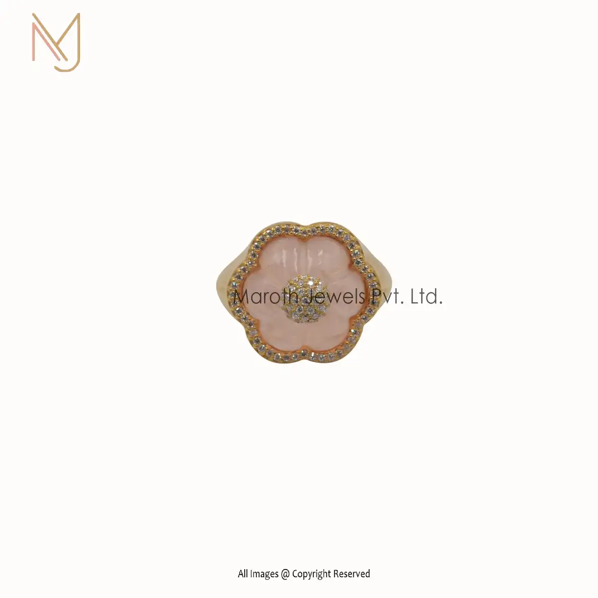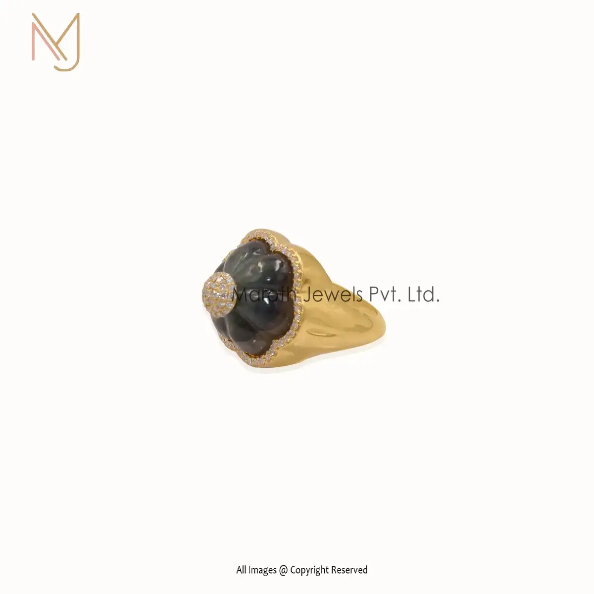 925 Silver Yellow Gold Labradorite & Moissanite Flower Ring Manufacturer