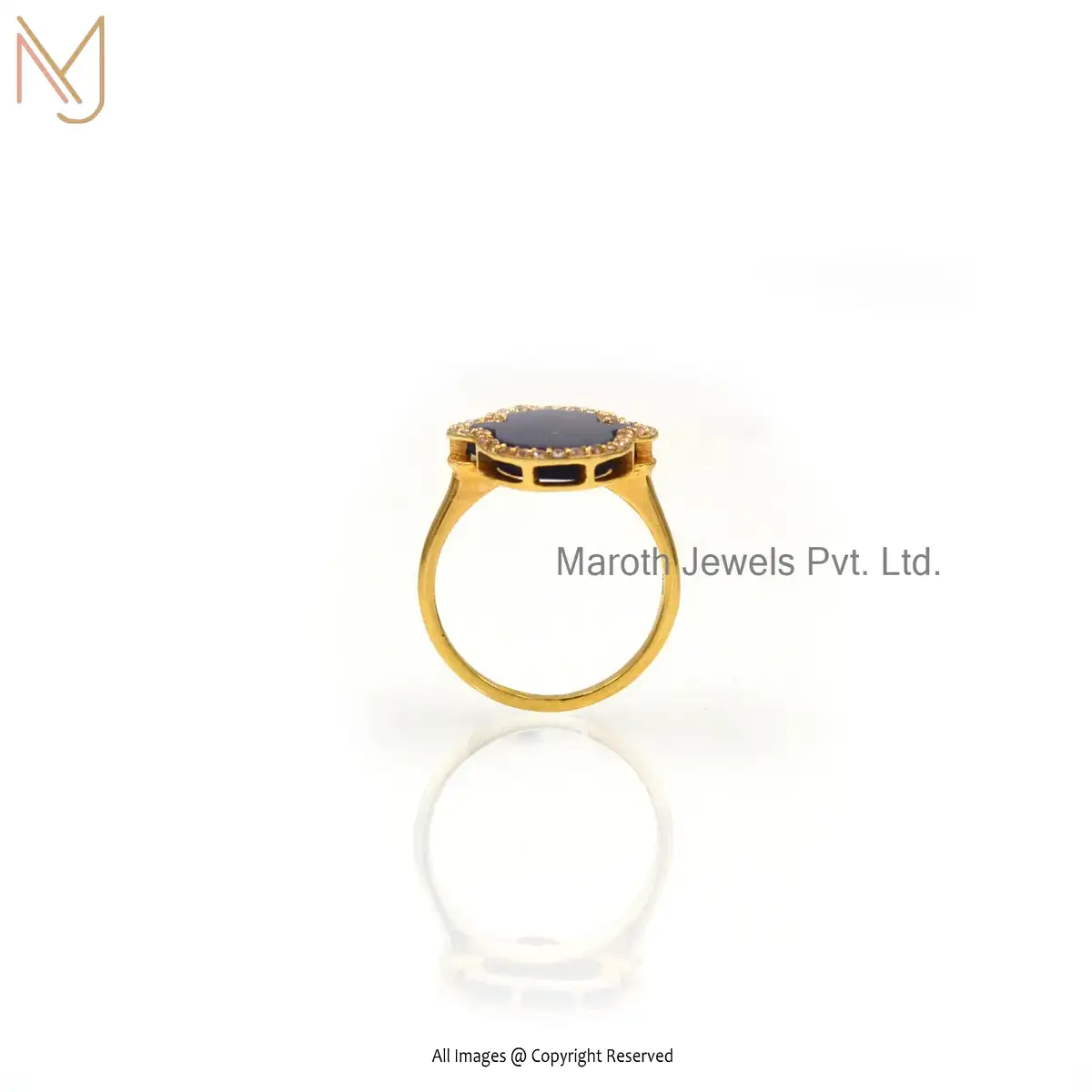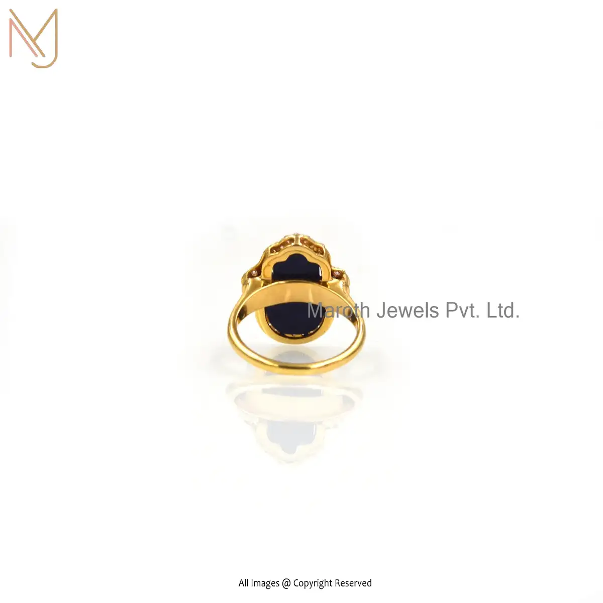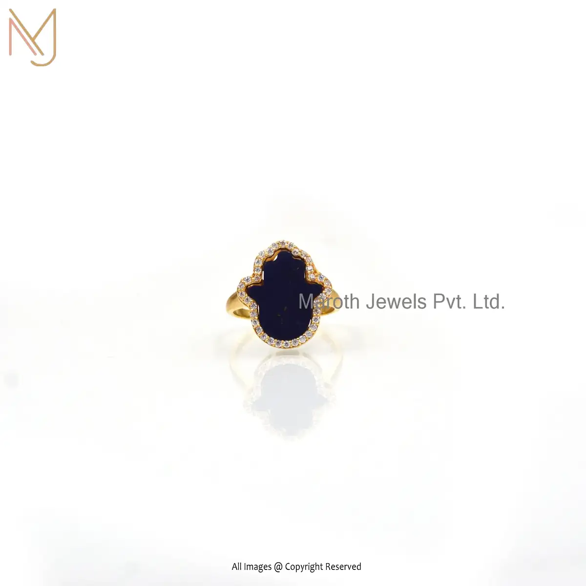 925 Silver Yellow Gold Lapiz Lazuli Hamsa Hand Ring Jewelry Supplier