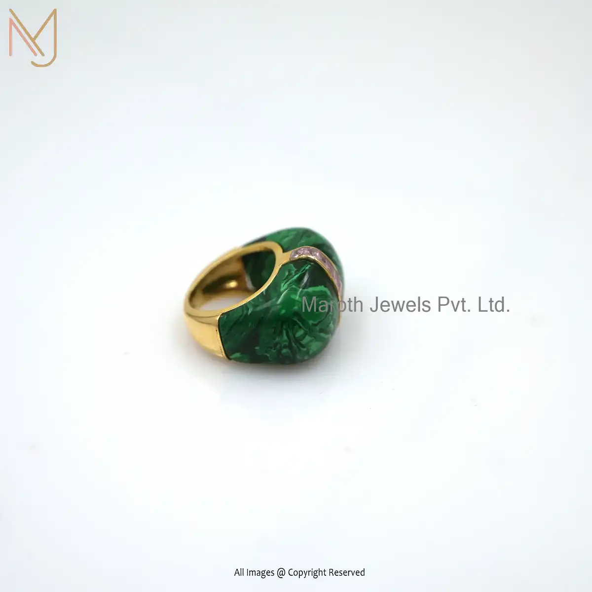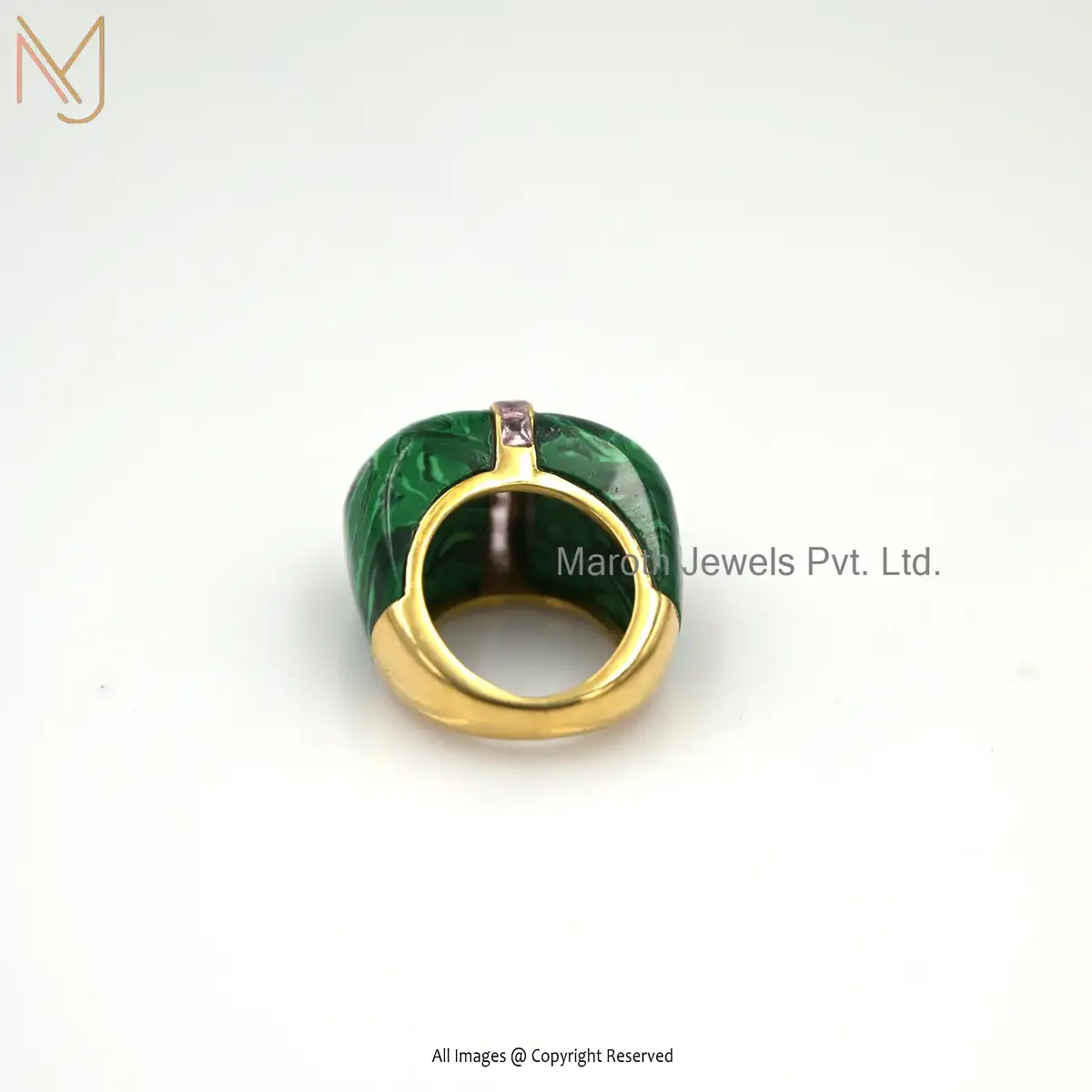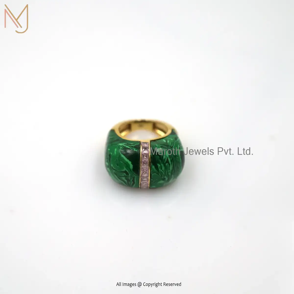 925 Silver Yellow Gold Malachite & Pink Cubic Zircoins Dome Ring Manufacturer