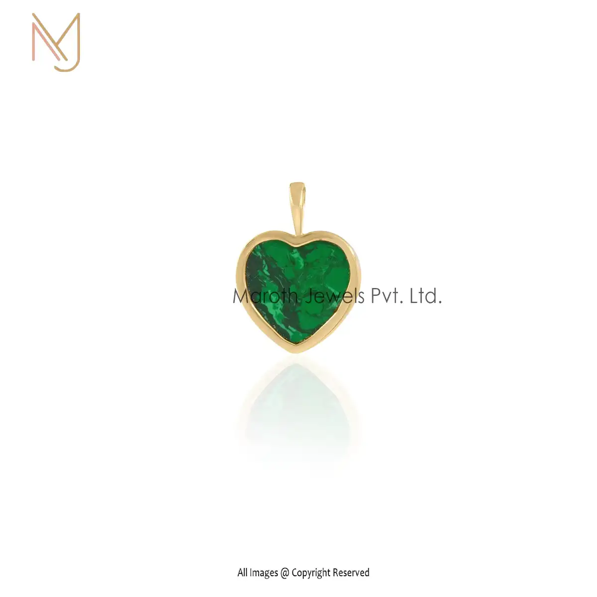 925 Silver Yellow Gold Malachite & Pink Tourmaline Heart Pendant Jewelry Suppiler